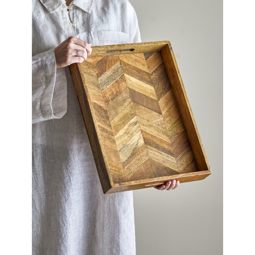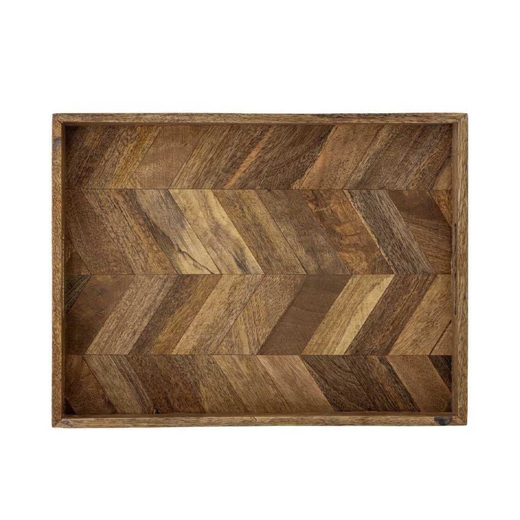 Servírovací podnos KATALYN od dánského výrobce nádherného nábytku BLOOMINGVILLE. KATALYN je velký a praktický podnos vyrobený z krásného mangového dřeva s certifikací FSC. Tác se vyznačuje jedinečným vzorem rybí kosti a přírodními barevnými variacemi, díky nimž je každý tác skutečně výjimečný. Přírodní barvy tácu jsou ideální pro vnesení kousku přírody do interiéru.
