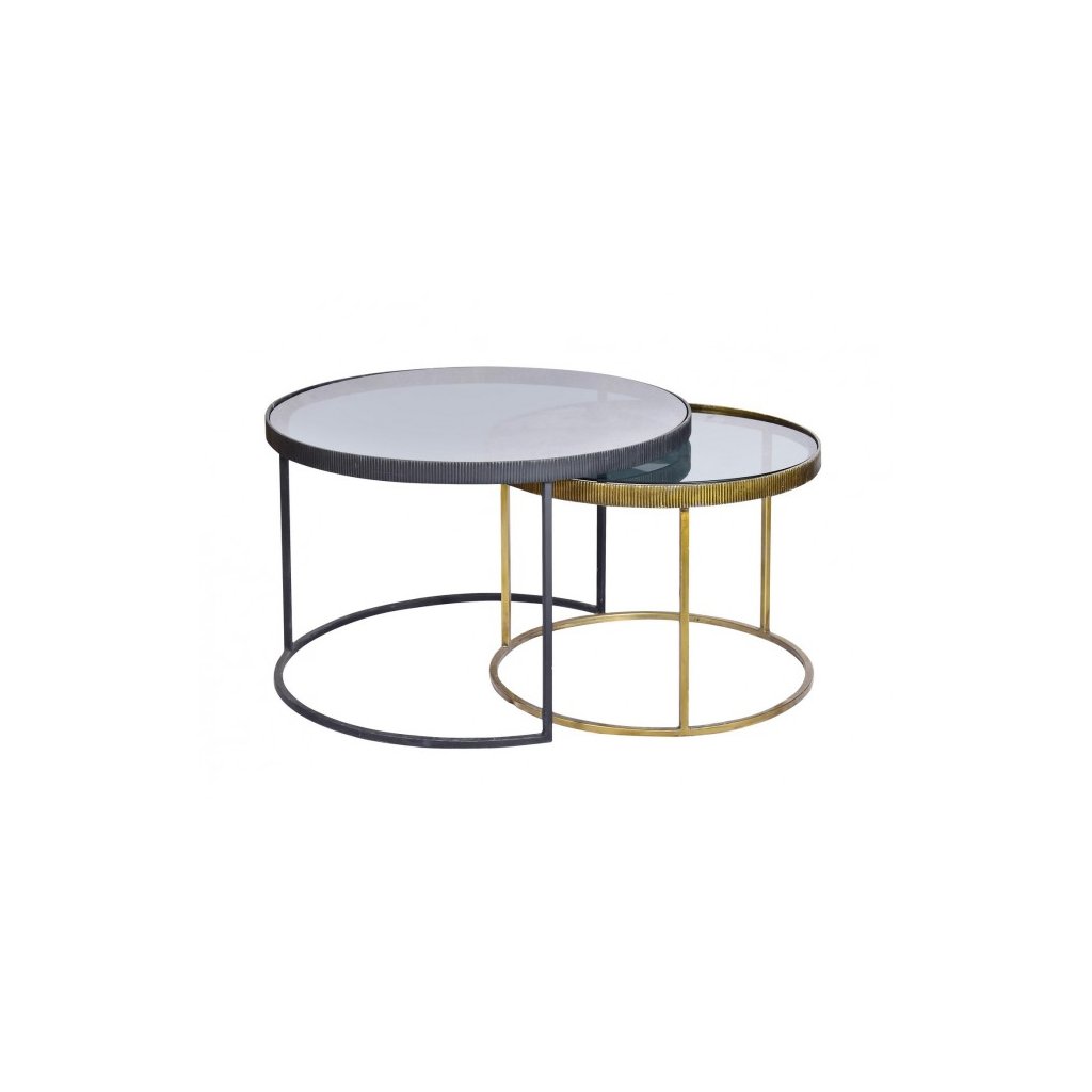 Set dvou konferenčních stolků YAMIR od italského výrobce kvalitního nábytku BIZZOTTO v krásné kombinaci oceli a skla.