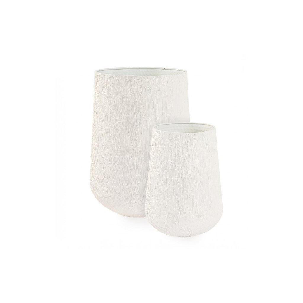 Set 2 květináčů KENAR od italského výrobce stylového nábytku BIZZOTTO z ručně opracovaného kovu s matnou smaltovou povrchovou úpravou v béžovém provedení.
