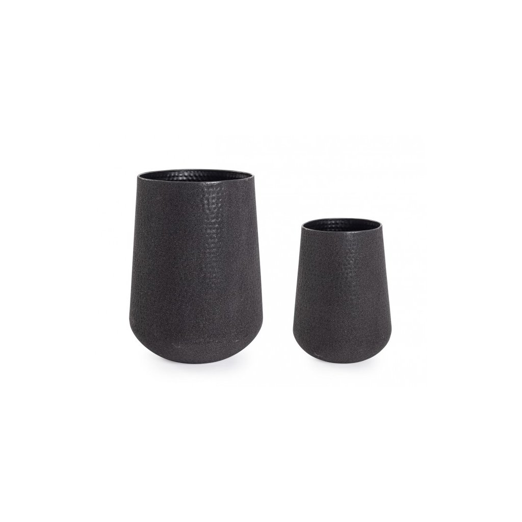 Set 2 květináčů KENAR od italského výrobce stylového nábytku BIZZOTTO z ručně opracovaného kovu s matnou smaltovou povrchovou úpravou v černém provedení.