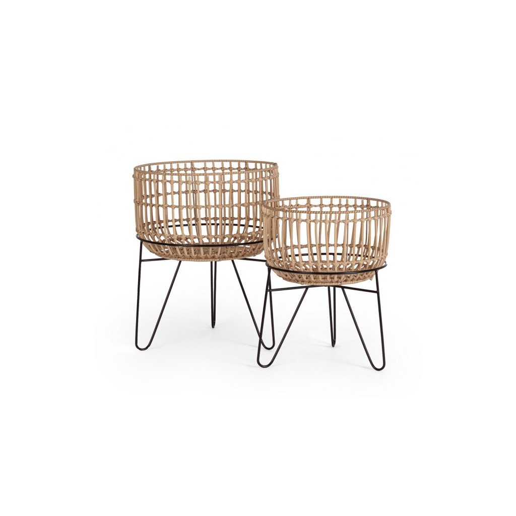 Designový set 2 květináčů YULIAN od italského výrobce stylového nábytku BIZZOTTO. Set YULIAN obsahuje 2 "koše" ve světlé boho barvě, které jsou zasazeny do tenké kovové konstrukce. Celé květináče jsou vyrobeny z drátů a následně obaleny polyrattanem, což vytváří vskutku zajímavý a krásný výrobek.