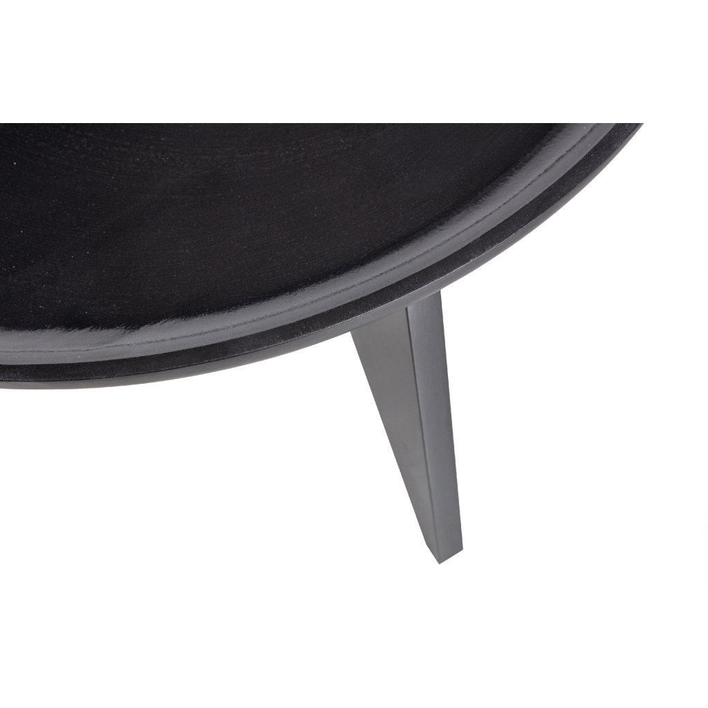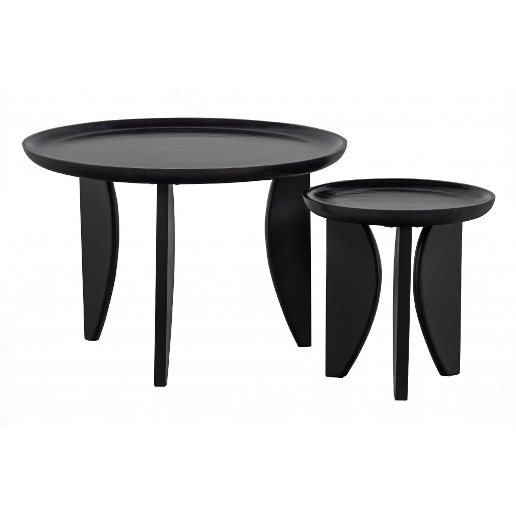 Set konferenčních stolků HIGH HEELS od holandského výrobce designového nábytku vtwonen. Stolky HIGH HEELS jsou v provedení kulaté desky a nohou s velmi originálním designem. Tři nohy zajišťují maximální stabilitu, nosnost a pevnost. Stolky jsou vyrobeny z mangového dřeva s lesklým černým nátěrem.