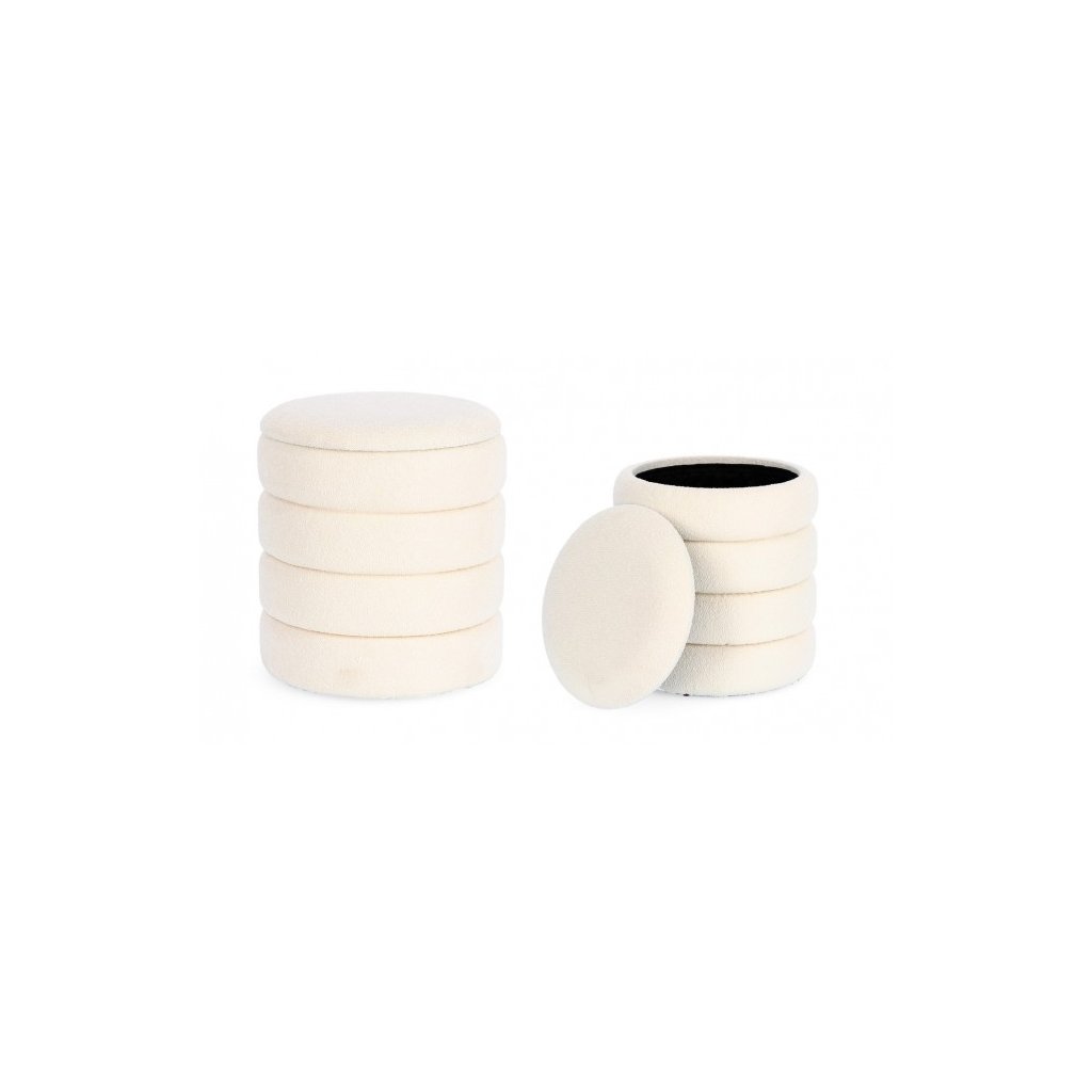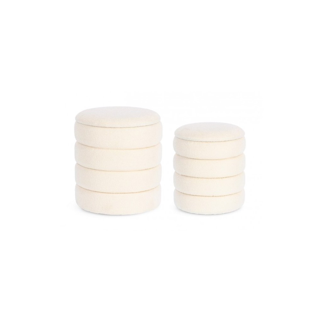 Set 2 pufů KATERINA od italského výrobce kvalitního nábytku BIZZOTTO v provedení krásného bouclé potahu v krémové barvě.