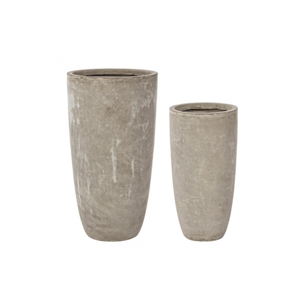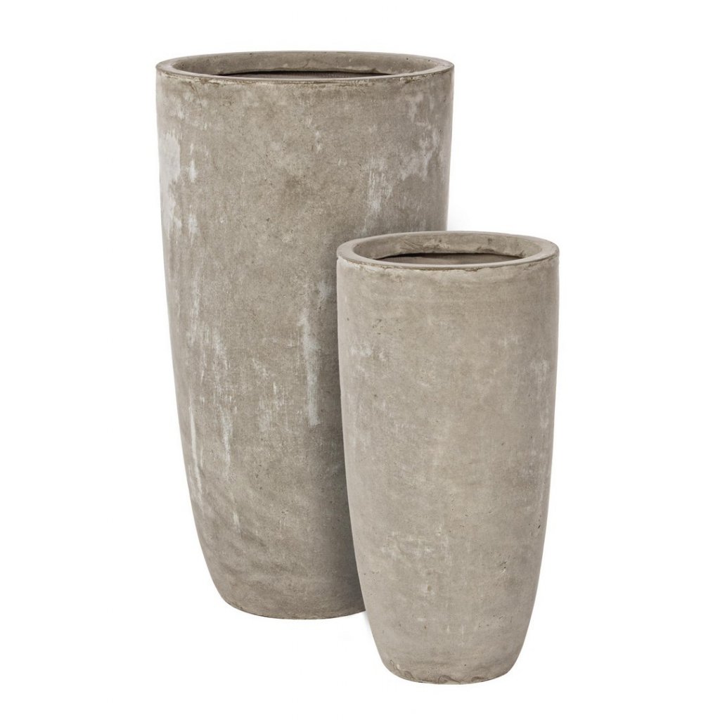 Set 2 vysokých květináčů SAND od italské firmy stylového nábytku BIZZOTTO ze směsi skleněného vlákna a jílu ve světlé barvě.