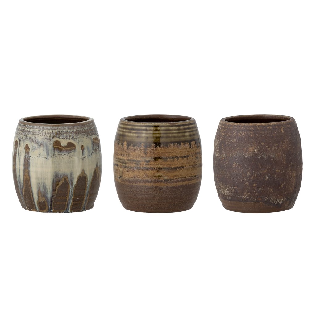Stylový a krásný set 3 hrnků DAHLIA od dánské značky nádherného nábytku BLOOMINGVILLE. DAHLIA obsahuje 3 krásné hrnečky z kameniny s reaktivní glazurou v hnědé barvě. Každý z nich má jedinečný a odlišný design, který můžete kombinovat a vytvářet tak příjemnou a osobní kombinaci. Krásný zástupce severského designu, díky kterému bude ranní káva nebo čaj zase o něco příjemnější.