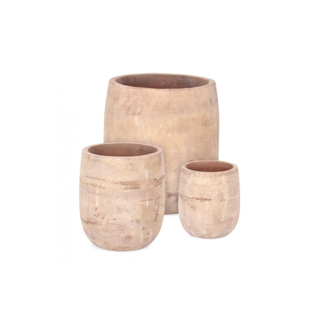 Set 3 květináčů MINH od italské značky stylového nábytku BIZZOTTO v provedení světle hnědé terakoty.