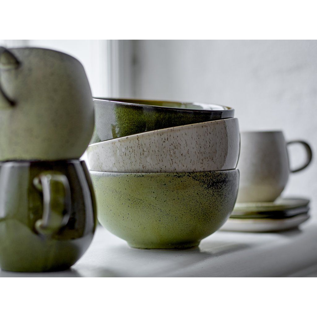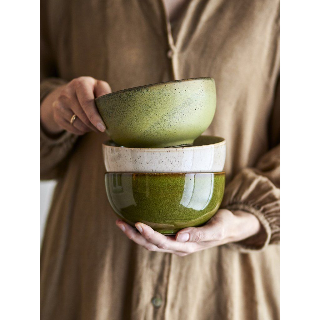 Set 3 misek ADDISON od dánské značky BLOOMINGVILLE. Misky vás zaujmou svým elegantním a moderním vzhledem. Jsou vyrobeny z kameniny a jejich povrch zdobí reaktivní glazura, která vytváří jemné odchylky mezi jednotlivými kusy. Každá miska se vyznačuje hladkými křivkami, jemně vyvýšeným dnem a jemnými kartáčovitými pruhy v tlumené zelené barvě, takže má charakteristický povrch. Mohou se vyskytnout drobné odchylky ve vzoru a intenzitě barev, díky čemuž je každý kus jedinečný.