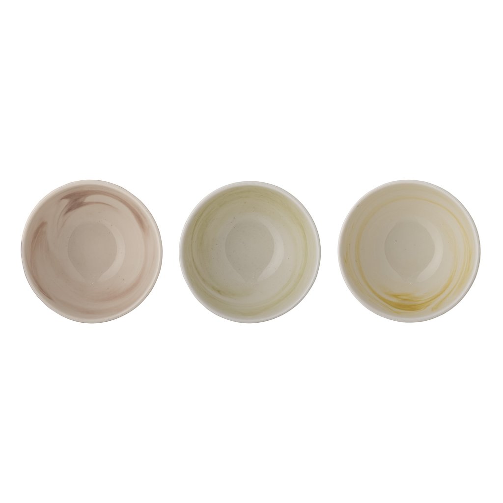 Stylový a krásný set 3 misek PALMA od dánské značky nádherného nábytku BLOOMINGVILLE. PALMA obsahuje 3 krásné misky z bílé kameniny. Misky mají akvarelové efekty v okouzlujících odstínech fialové, žluté a zelené. Misky jsou ideální na tapas, oříšky nebo chipsy. Krásný zástupce severského designu, díky kterému bude Váš požitek z jídla zase o něco příjemnější.