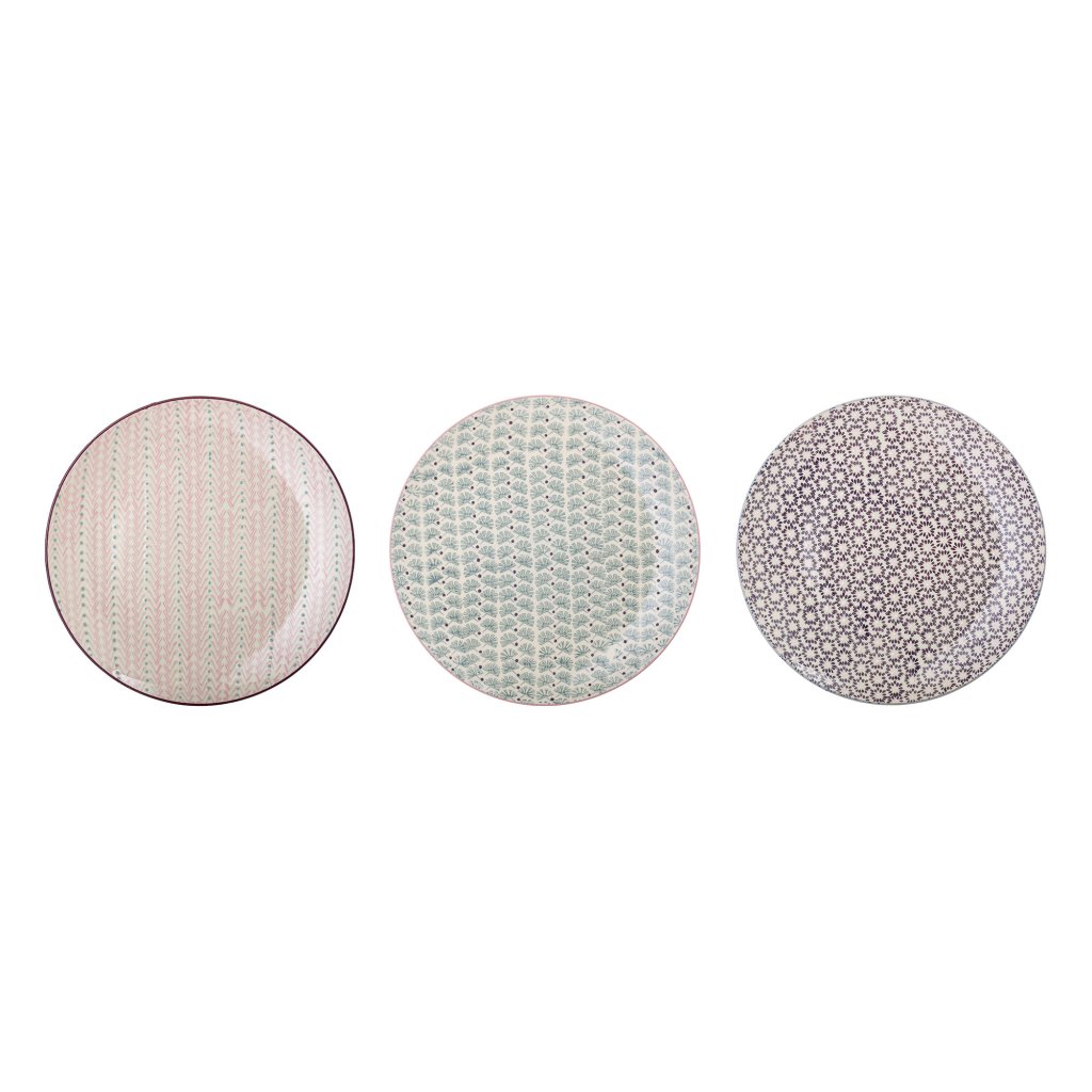 Stylový a krásný set 3 talířů MAYA od dánské značky nádherného nábytku BLOOMINGVILLE. MAYA obsahuje 3 krásné talíře s průměrem 28 cm z bílé kameniny. Talíře jsou glazované v okouzlujících odstínech růžové, tyrkysové a fialové s vyraženými vzory. Krásný zástupce severského designu, díky kterému bude Váš požitek z jídla zase o něco příjemnější. Parádní sestavu dostanete doplněním dalšího nádobí ze stejné řady MAYA.