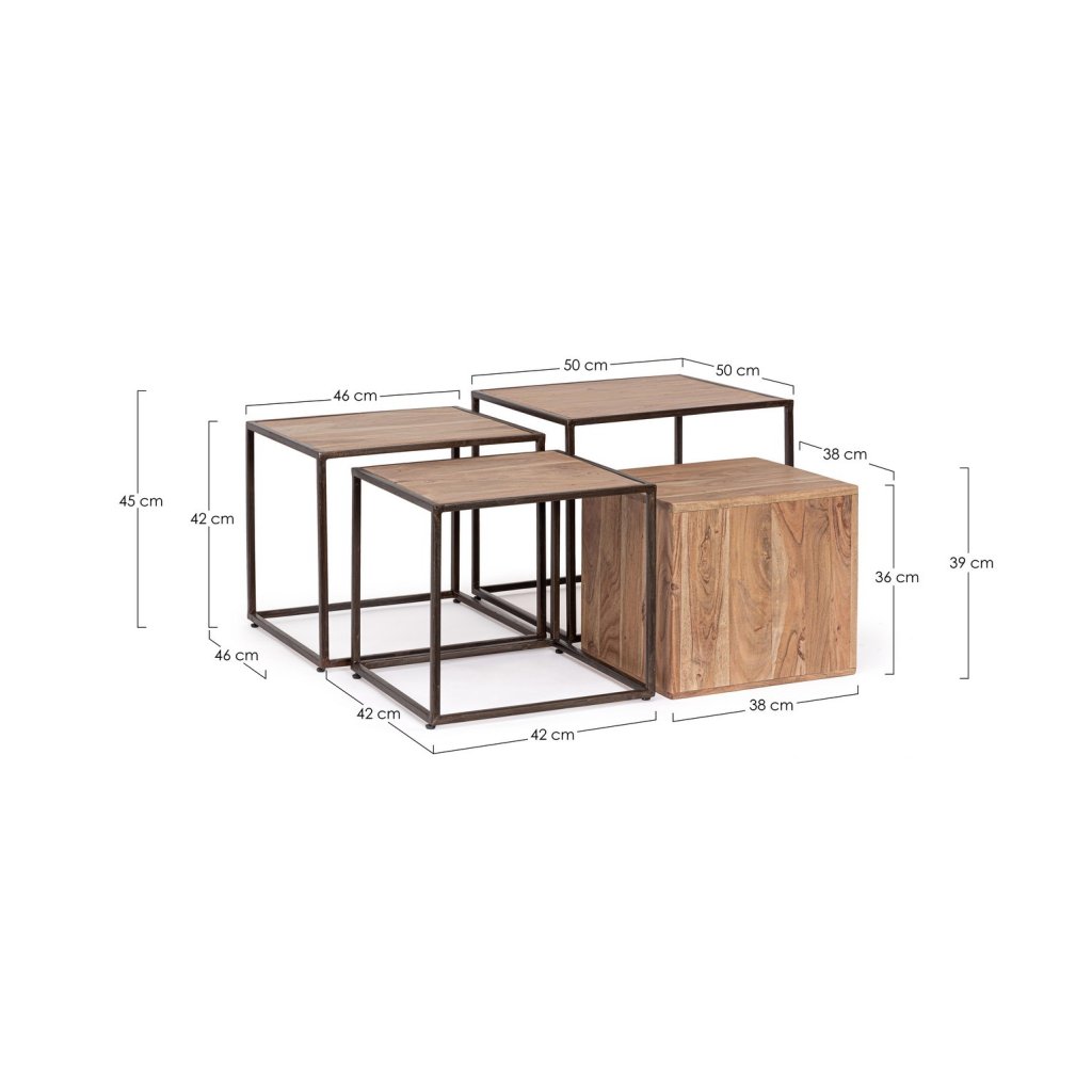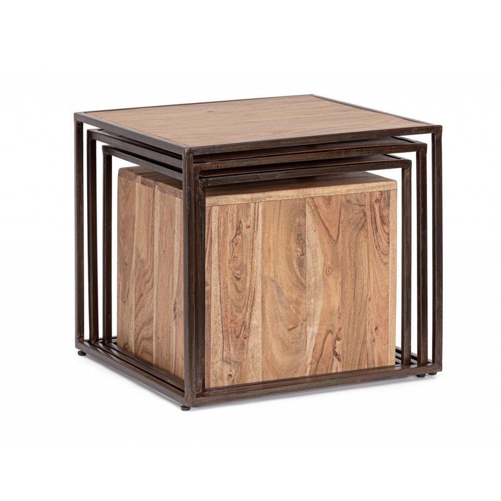 Designový set odkládacích stolků JANAK od italské firmy BIZZOTTO. Stolky JANAK jsou vyrobeny z práškované černé oceli s deskou z akáciového dřeva. Stolky jsou skladné, minimalistického typu. Krásně s nimi ozvláštníte svůj obývací pokoj. S nádechem industriálního stylu se báječně hodí do každého interiéru.