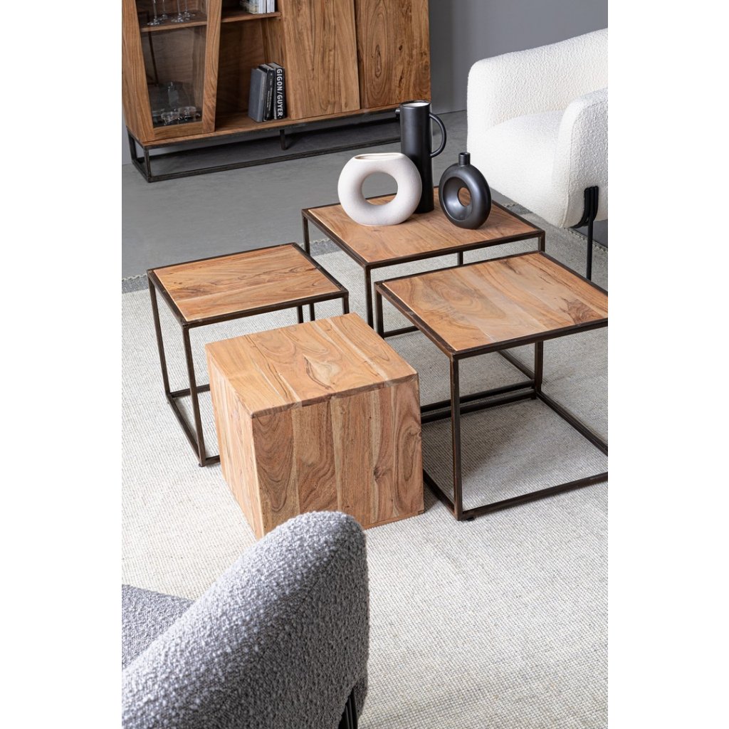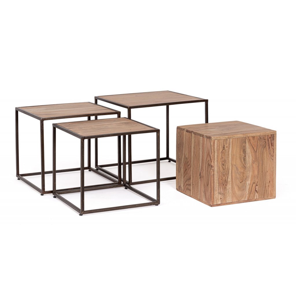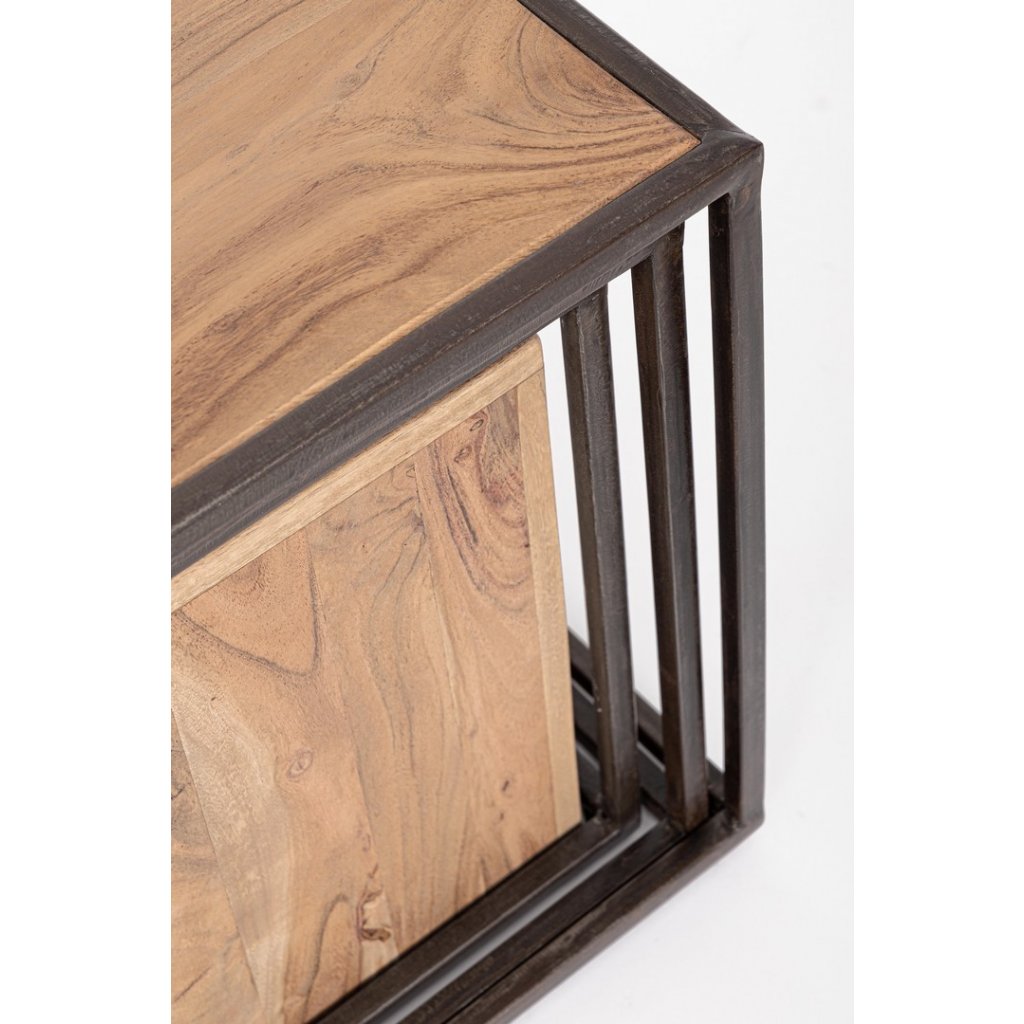 Designový set stolků JANAK od italské firmy stylového nábytku BIZZOTTO v provedení černé kovové konstrukce a akáciového dřeva.