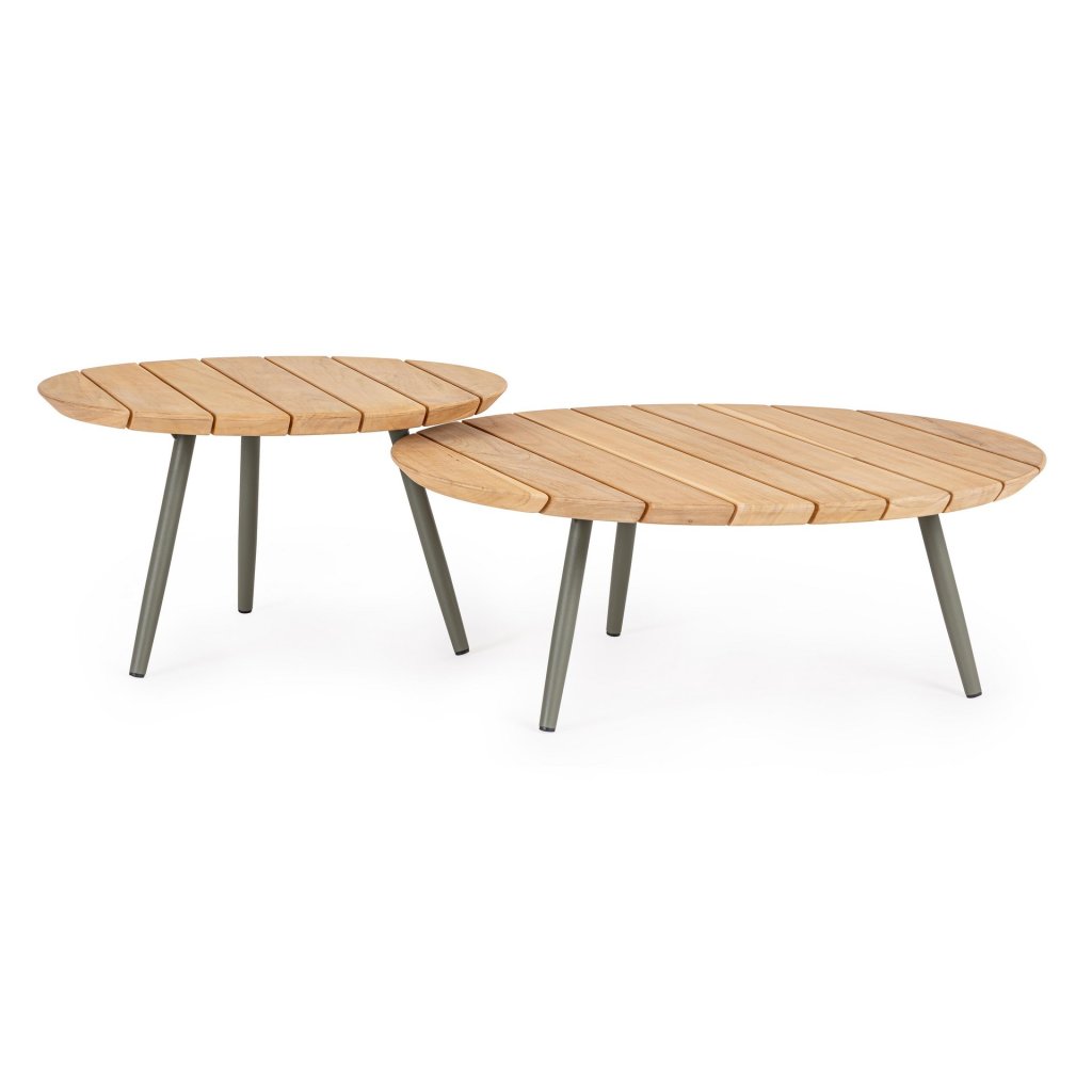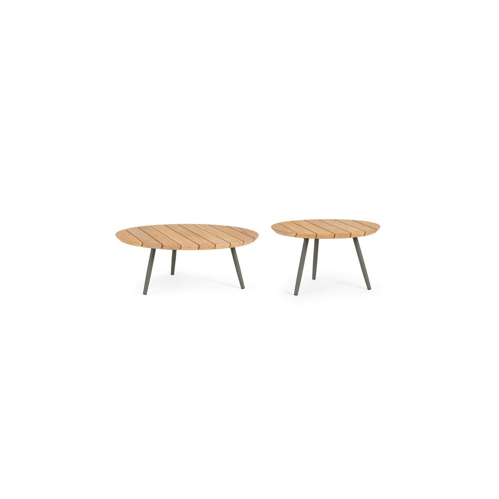 Zahradní set dvou konferenčních stolků IVISSA od italského výrobce stylového nábytku BIZZOTTO. Stolky IVISSA jsou vyrobeny z nerezové oceli. Desky stolků mají různé rozměry a jsou z teakového dřeva. Dřevo má certifikací SVLK, což  je indonéský certifikát pro dřevařský průmysl, který zajišťuje legální původ dřeva z Indonésie.