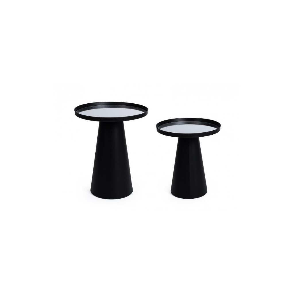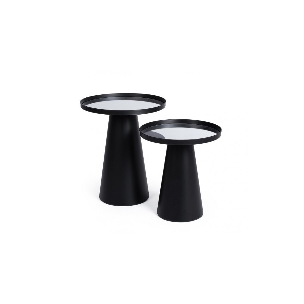 Designové konferenční stolky REFLEX od italské firmy stylového nábytku BIZZOTTO. Stolky REFLEX tvoří černá ocelová konstrukce, která vás osloví svým zajímavým elegantním designem. Skleněná zrcadlová deska má kulatý tvar. Nádherné moderní konferenční stolky pozvednou úroveň každého obývacího pokoje. Stolky se prodávají v setu po 2 kusech.