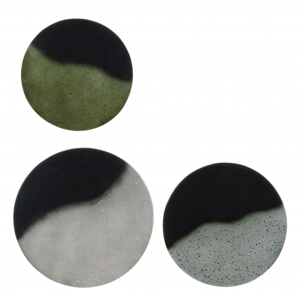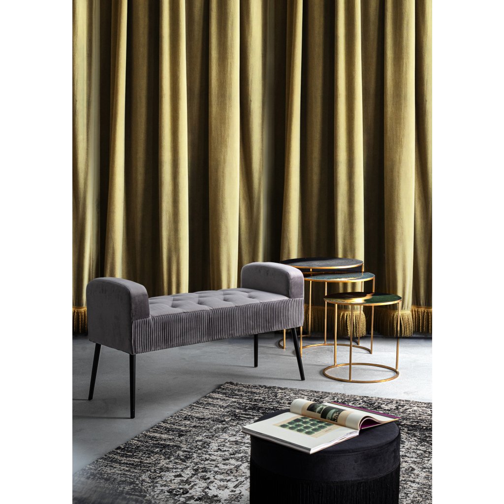 Set tří designových stolků DESUR od italské firmy stylového nábytku BIZZOTTO. Stolky DESUR tvoří ocelová konstrukce se zlatým dekorem, přičemž je přizpůsobena tak, aby do sebe stolky zapadly. Vrchní kulatá deskasmaltovanou úpravu a vytváří tak velmi originální kousky. Jednoduché, barevné, ale elegantní stolky v moderní kombinaci dodají šmrnc vašemu interiéru.