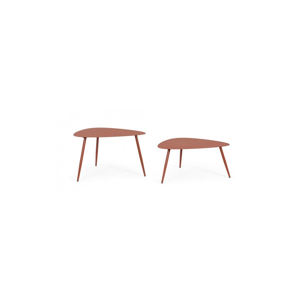 Zahradní set dvou konferenčních stolků YVONNE od italského výrobce stylového nábytku BIZZOTTO. Stolky YVONNE jsou kompletně vyrobeny z oceli ošetřené e-povlakem s práškovým nátěrem v terakotovém odstínu. Povrch zahradního nábytku má matný efektDesky stolků mají shodný rozměr 77,5x73,5 centimetrů. Stolky se liší svou výškou a jsou díky tomu velmi praktické.