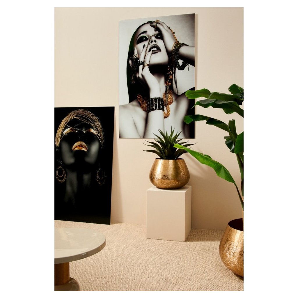 Set 3 zlatých květináčů VARANASI od italské značky stylového nábytku BIZZOTTO. Set tvoří 3 kulaté květináče, jenž jsou ručně vyrobeny z hliníku, vykartáčovány a následně nabarveny zlatou barvou. Díky kartáčování povrchu mají květináče typické mapy, díky nimž jsou opravdu krásné a unikátní. Díky rozdílným velikostem dáte menší do větších a můžete případně uklidit.