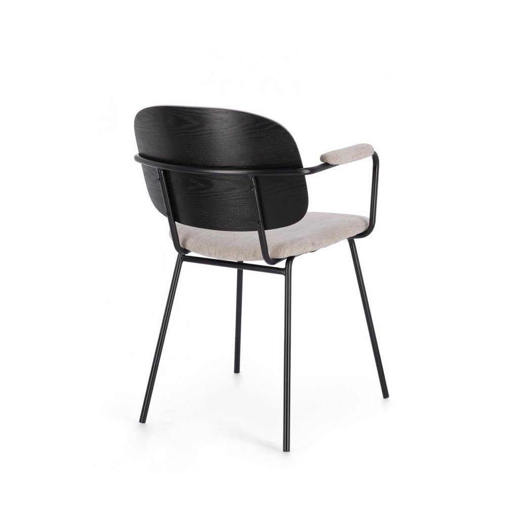 Designová jídelní židle SIENNA od italského výrobce nádherného nábytku BIZZOTTO. Židle SIENNA má krásnou a jednoduchou konstrukci z černě lakovaného kovu, proto je pevná a vydrží téměř cokoliv. Sedák je vyroben ze překližky se šedým textilním potahem. Vrchní sedák je pak z černě lakované dýhy topolu. Váš větší komfort zajistí područky z kovu a textilní podložky