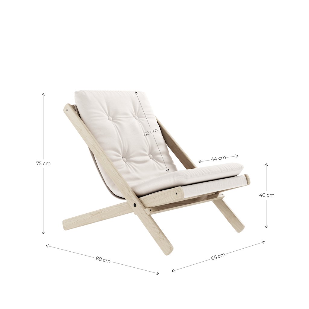 Skládací křeslo BOOGIE od dánského výrobce stylového nábytku KARUP DESIGN. BOOGIE spojuje atraktivní vzhled, funkčnost a pohodlí. Křeslo je navrženo s důrazem na praktičnost a úsporu místa – lze jej jednoduše složit a uschovat, což oceníte zejména v menším bytě, na terase či zahradě. Rám je vyroben z bukového dřeva s certifikací FSC, která zaručuje odpovědný původ materiálu. Pohodlí zajišťuje silná matrace s polyesterovou výplní a pěnovým jádrem. Stejně jako všechny futony od výrobce KARUP DESIGN je i tato matrace ručně vyráběná, proto se mohou objevit drobné rozdíly ve velikosti a hmotnosti. Potah není voděodolný, proto křeslo chraňte před deštěm a jinými nepříznivými povětrnostními podmínkami.