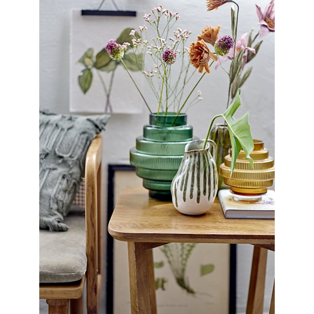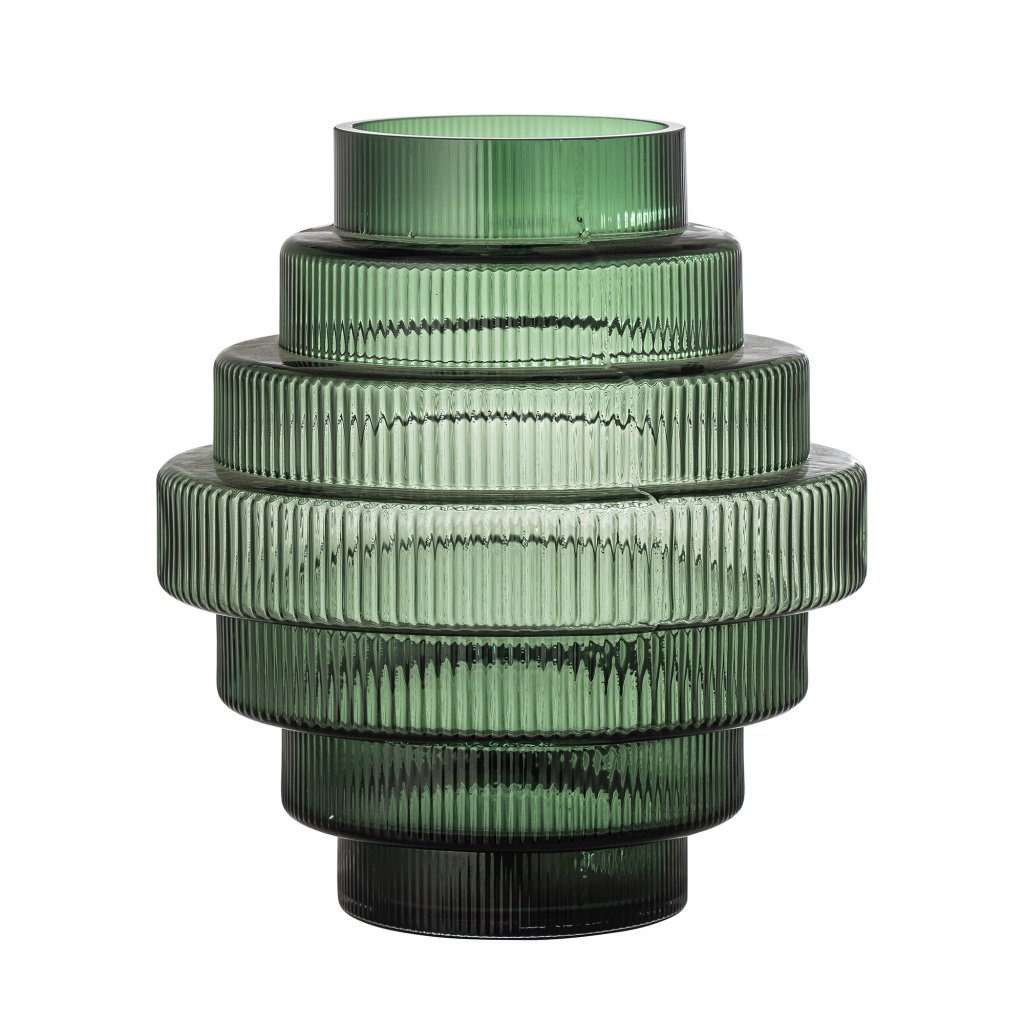 Designová váza BETTIE od dánského výrobce nádherného nábytku BLOOMINGVILLE. Krásná skleněná váza je vyrobena ze zeleného barveného skla s úžasnými detaily. Váza má velmi zajímavý design, který mísí rovné linie a tvarované prvky. Stylová váza, kterou doplníte jakoukoli květinou a rozzáříte tak svůj interiér.