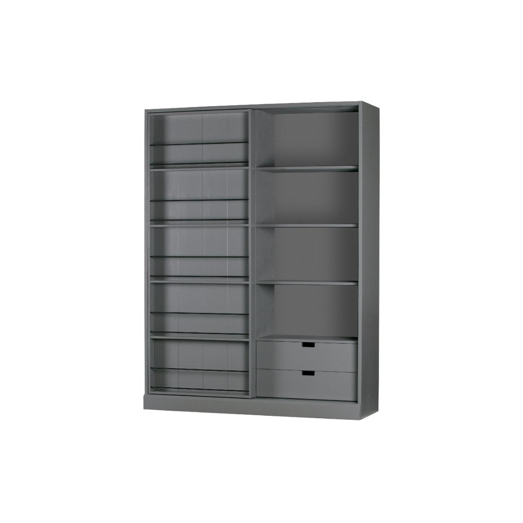 Designová skříň SWING od holandského výrobce kvalitního nábytku WOOOD. SWING je vyrobena z masivní hrubě řezané borovice v šedém provedení. Posuvné dveře se pohybují na kovové kolejnici. SWING disponuje velkým úložným prostorem, je rozdělena na 2 části, leva pouze s policemi a pravá se 2 výsuvnými zásuvkami ve spodní části. Úložný prostor nabízejí sami posuvné dveře, kam můžete umístit dekorativní talíře, časopisy nebo kuchařky. Má výbornou stabilitu, díky kvalitě zpracování a použitým materiálům a je zhotovena z příčně řezaného hrubého dřeva, řezáním zde vznikl nádech rustikálního vzhledu. Mohou zde vznikat mírné odlišnosti od fotek v detailu, každá skříň je tedy unikátem! Dřevo se pyšní certifikátem FSC, značící ekologickou a k přírodě šetrnou těžbu dřeva z obnovitelných zdrojů. Tuto skříň máme ještě v bílé, černé a v tmavě šedé.