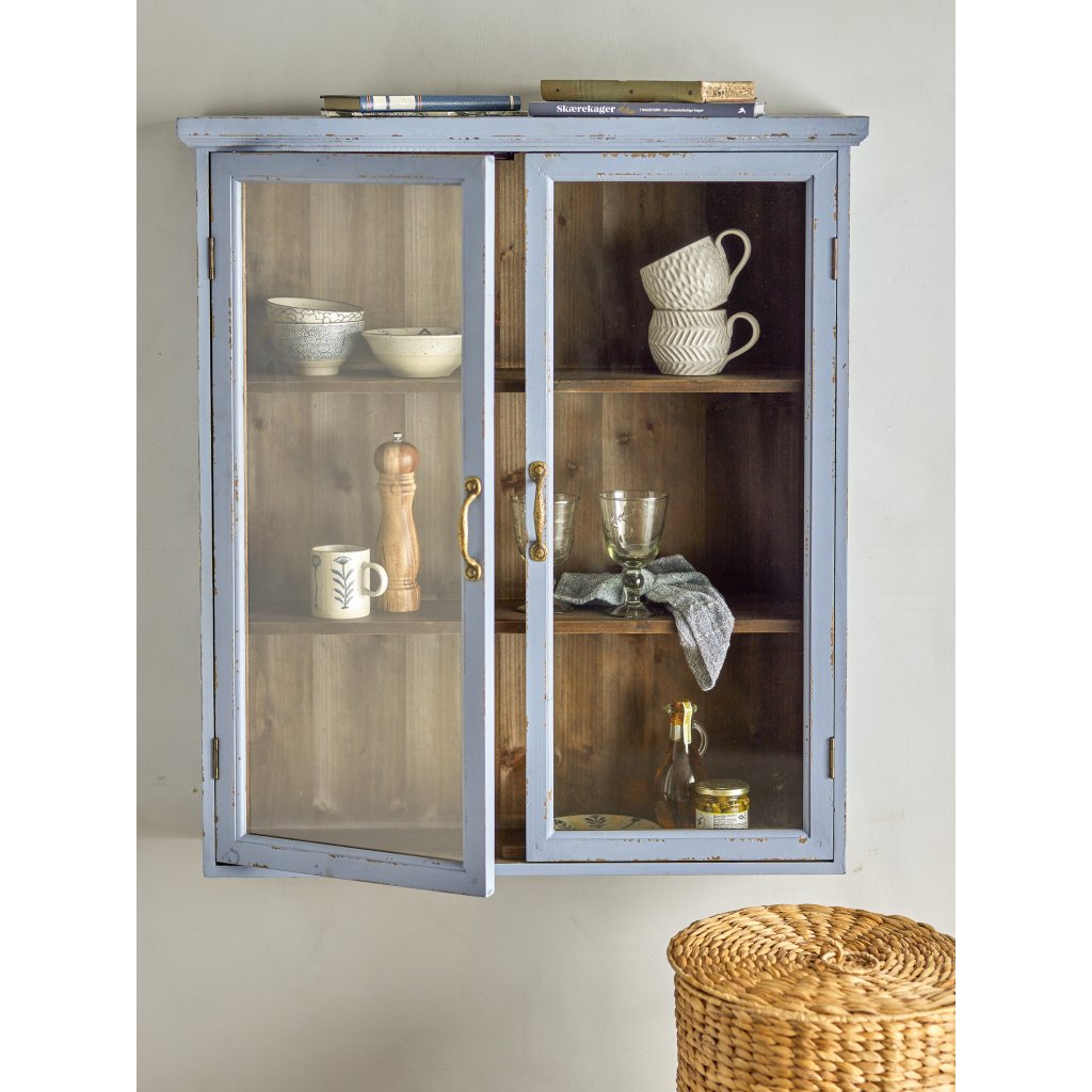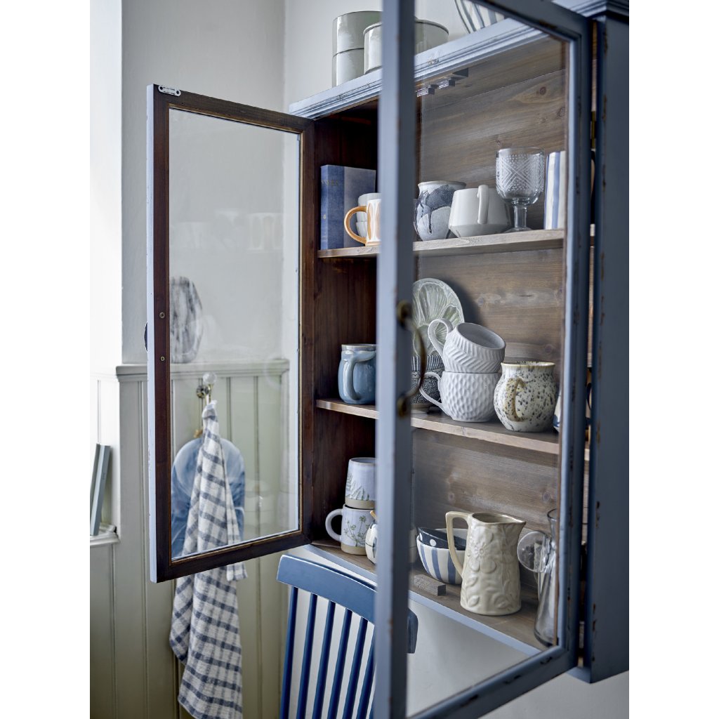 Designová kabinetní skříňka HAZEM od dánského výrobce nádherného nábytku BLOOMINGVILLE. HAZEM vás zaujme svým dekorativním i praktickým charakterem. Je vyrobena z jedle v kombinaci s MDF, sklem a kovem, představuje stylový kousek s jemně vintage nádechem. Její zářivě modré provedení okamžitě přitáhne pozornost a dodá interiéru jedinečný šmrnc. Skleněná dvířka umožňují elegantní vystavení oblíbených dekorací, porcelánu nebo knih, čímž vytvářejí vizuálně přitažlivý úložný prostor.