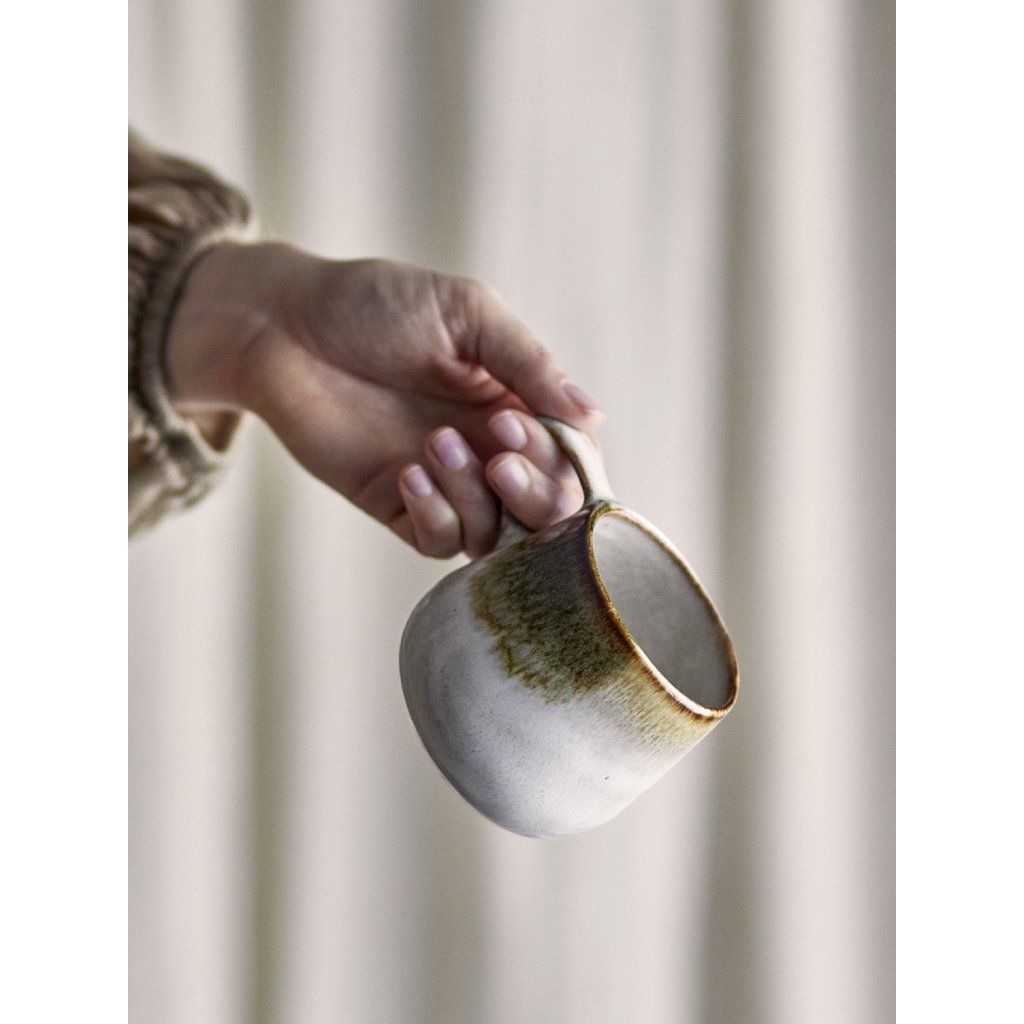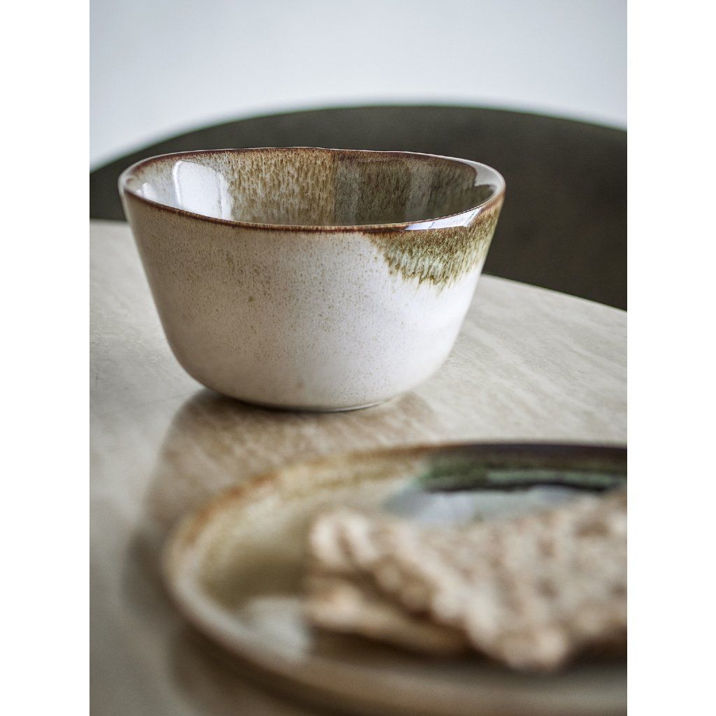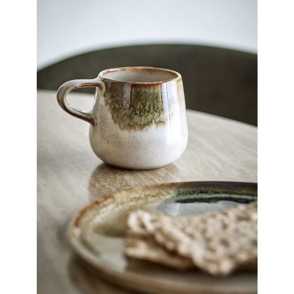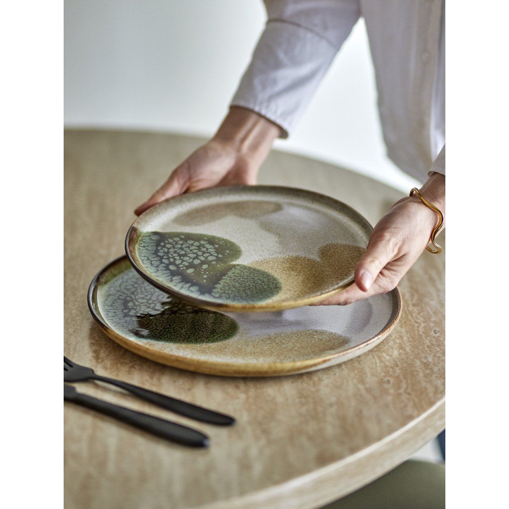 Stylová a krásná snídaňová sada JULES dánské značky nádherného nábytku BLOOMINGVILLE. JULES přináší harmonii severské jednoduchosti a řemeslného zpracování do každodenního stolování. Tato sada z kameniny zaujme svou ručně malovanou reaktivní glazurou, která vytváří jedinečný povrch v zelených tónech s jemnými olivovými a hnědými akcenty. Každý kus je originál – drobné odchylky ve vzoru a intenzitě barev dodávají sadě autentický a přirozený charakter. Sada obsahuje vše potřebné pro stylovou snídani: misky (750 ml), hrnky (300 ml) a talíře, které dohromady tvoří funkční a esteticky vyvážený celek. Kamenina je odolná a praktická pro každodenní použití. Nádobí je vhodné do myčky, mikrovlnné trouby i trouby a je samozřejmě schválené pro kontakt s potravinami.