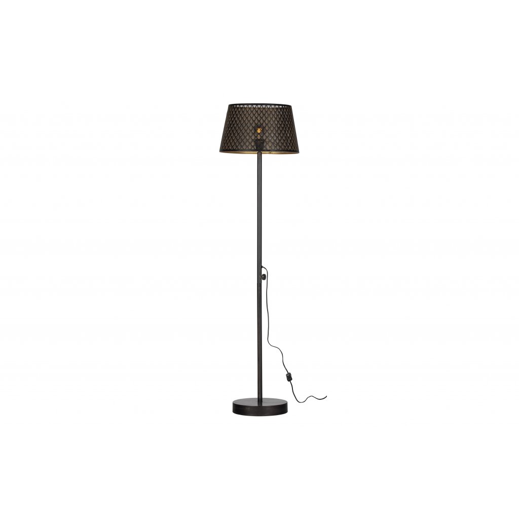 Stojací lampa KARS od holandského výrobce kvalitního nábytku WOOOD. Krásná designová moderní stojací lampa s kovovým stínidlem se starožitným černým povrchem a vnitřní stranou s mosazným povrchem. Stínidlo má zajímavý vyřezávaný tvar, díky čemuž propouští příjemné a hravé světlo. Lampa je vhodná pro připojení k stmívači.