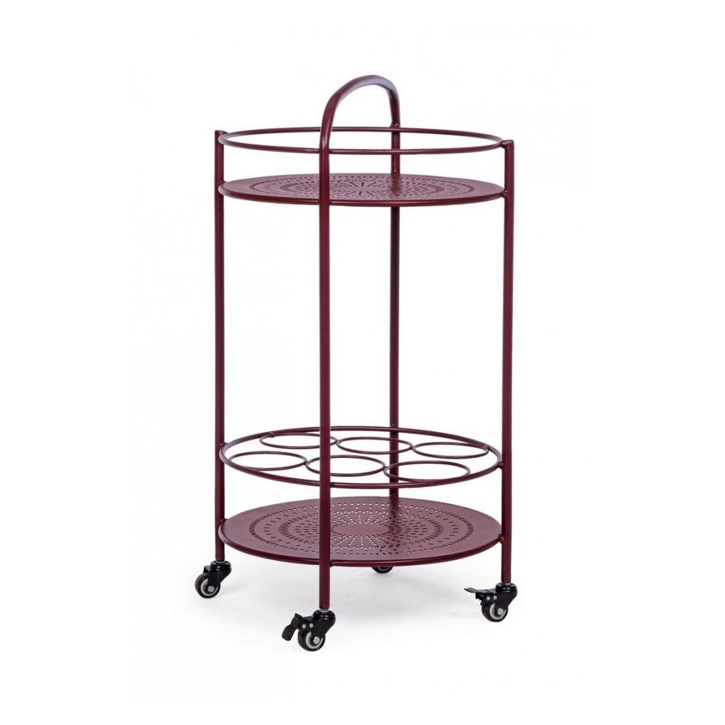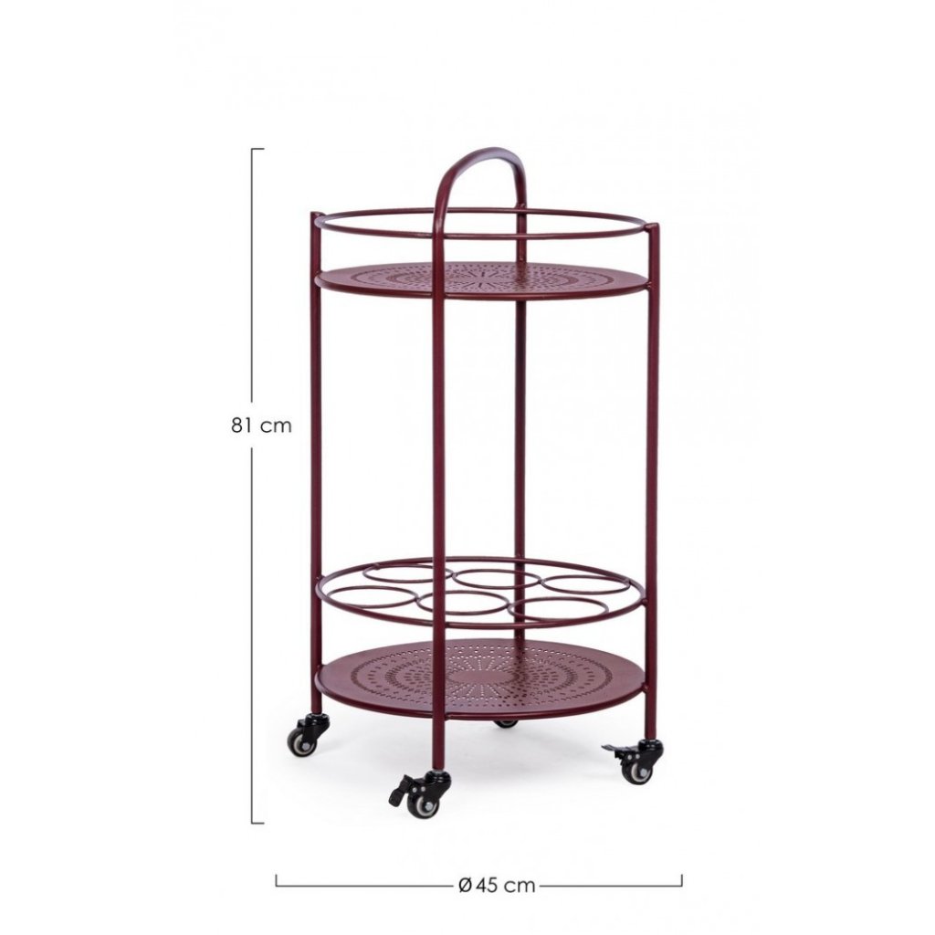 Stylový pojízdný stolek BURTON od italského výrobce stylového nábytku BIZZOTTO. Stolek je kompletně vyroben z tenké, ale pevné oceli a skládá ze 4 nohou, 2 pater, spodního s odložením lahví a vrchního taktéž pro lahve nebo jiné nádobí. Vrchní část pak disponuje lehkým úchytem pro případ, že zrovna kolečka nemůžete použít. Ideální společník na letní grilovací párty.