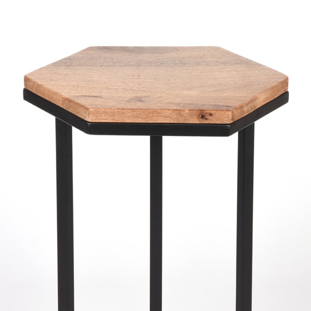 Stolek na notebook SLIDE od holandské designové značky LABEL51 je robustní stolek s hravým šestihranným designem, vyrobený z mangového dřeva a kovu. Tento skladný a posuvný stolek lze snadno umístit kamkoliv, abyste měli vše po ruce.