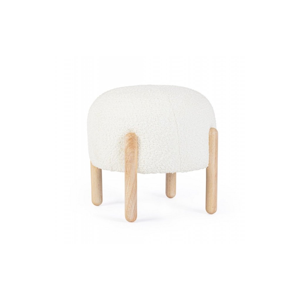 Designová stolička DAYLA od italského výrobce stylového nábytku BIZZOTTO. DAYLA je dodávána se 4 dřevěnými nohami ve světlém provedení, což zajišťuje stoličce potřebnou stabilitu a pevnost. Vrchní sedák s průměrem 45 cm je potažen potahem bouclé v moderní a stylové bílé barvě. K dostání i v dalších barevných variantách.