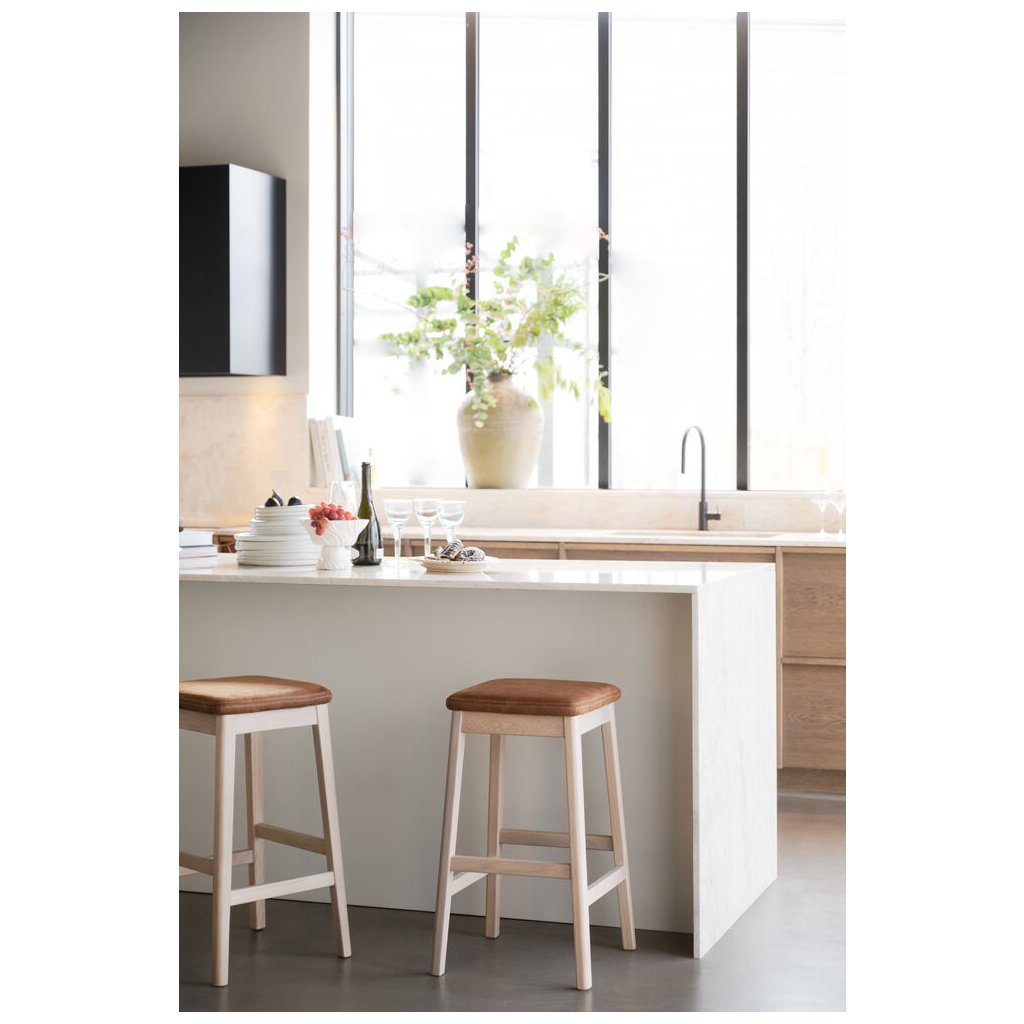 LIVERMORE v kombinaci běleného dubu a hnědé kožené textilie skvěle doplní interiéry v přírodním, industriálním i skandinávském stylu. Ladí s kuchyněmi se dřevěnými nebo kamennými pracovními deskami, s neutrálními tóny i kovovými prvky. Doporučujeme kombinaci s černým, pískovým nebo mosazným osvětlením a přírodními textiliemi pro harmonický a stylový prostor.