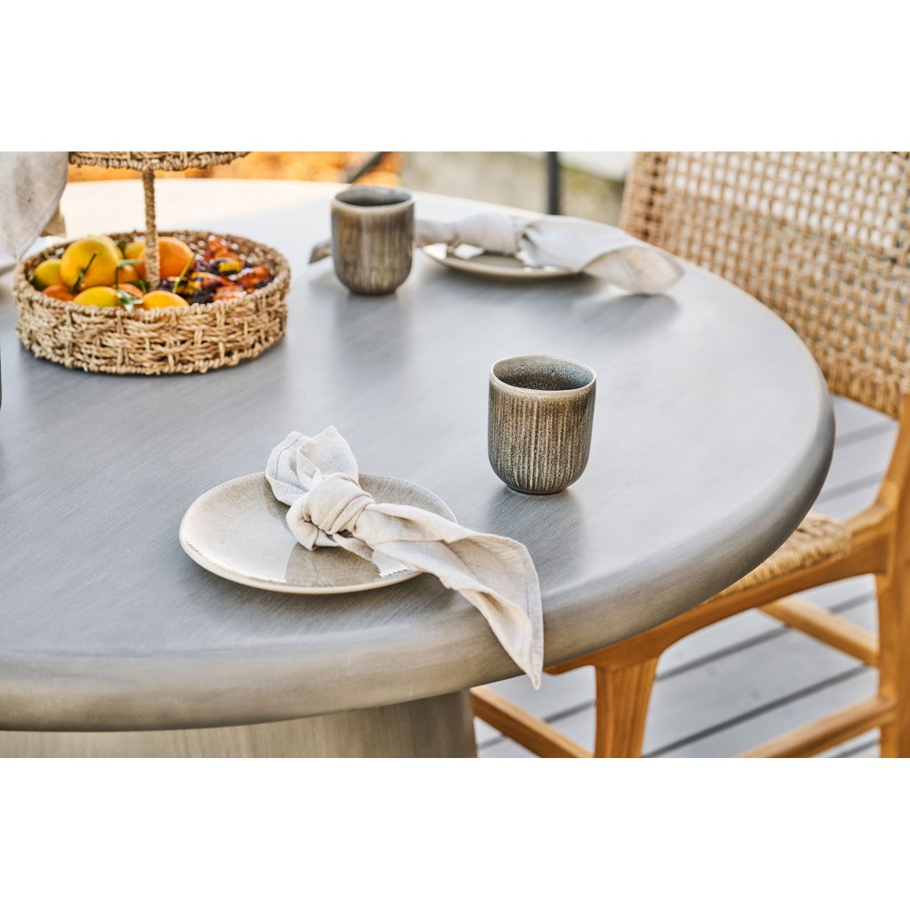Designový zahradní stůl BONNET od dánské značky nádherného dánského dodavatele HOUSE NORDIC. BONNET je nádherný zahradní jídelní stůl s výškou 75 cm, průměrem kulaté desky 120 cm, vyrobený z vláknitého jílu v šedém provedení, které imituje přírodní šedý kámen. Je velmi pevný, stabilní. Vskutku parádní zahradní jídelní stůl pro ty, co chtějí něco jiného než dřevo či kov.