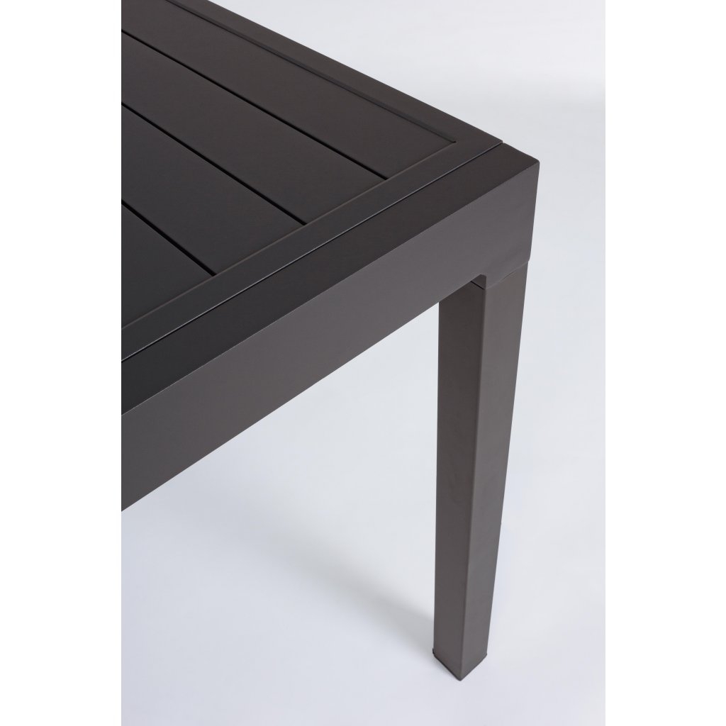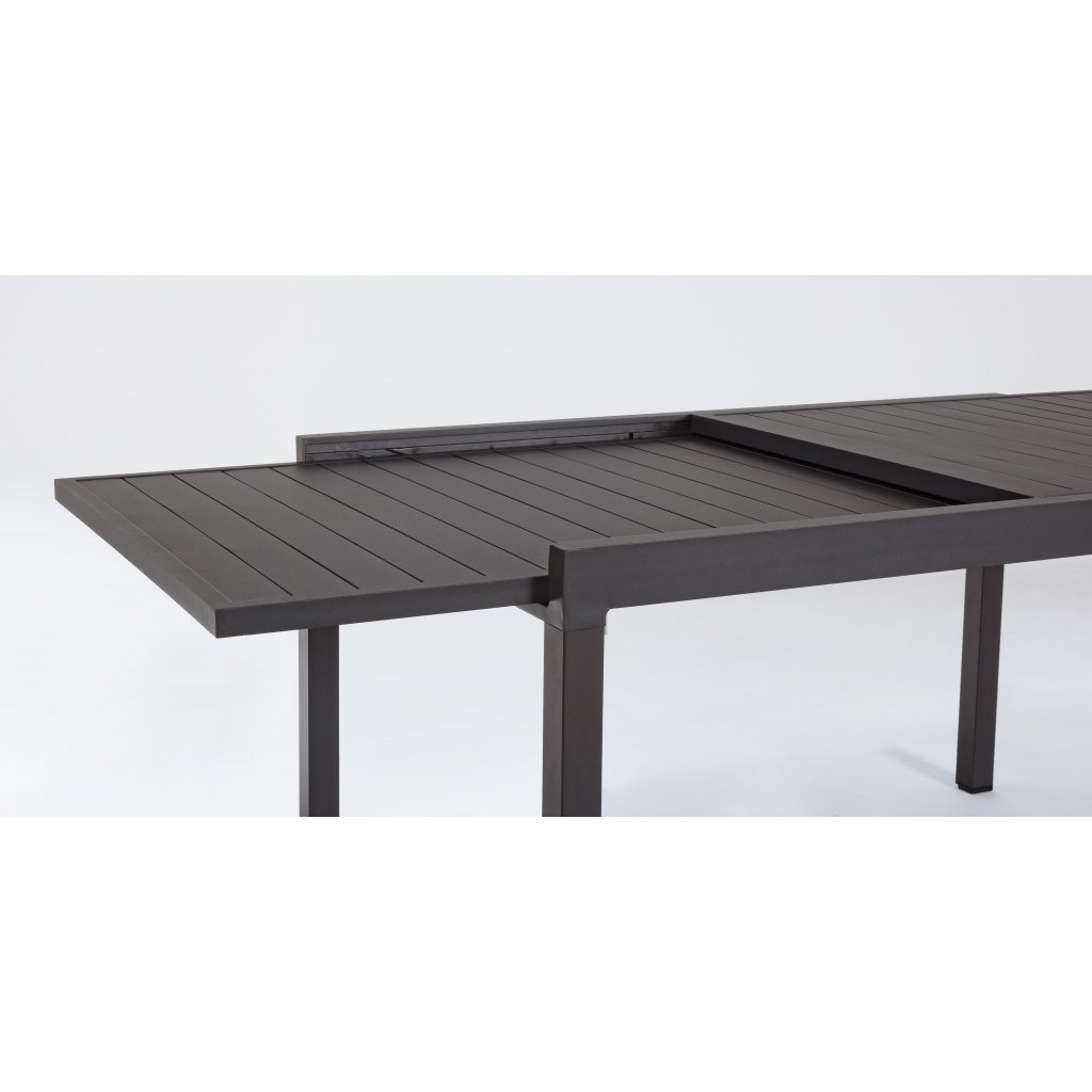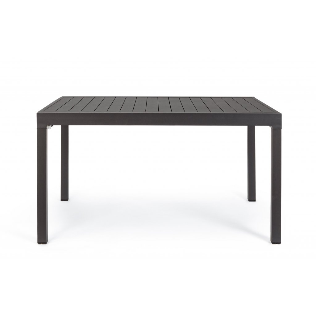 Rozkládací zahradní jídelní stůl PELAGIUS od italského výrobce stylového nábytku BIZZOTTO. Stůl je kompletně vyroben z tmavě stříkaného hliníku, což zajišťuje jeho maximální pevnost, stabilitu a pevnost vůči venkovním vlivům, ale také jeho poměrně nízkou váhu. Spojovací šrouby jsou galvanizovány, takže se nemusíme bát koroze. Stůl má 4 nohy, na nichž je rozkladatelná deska s délkou 135cm a možností jednoduchého prodloužení až na délku 270cm, takže krásně usadíte minimálně 8 osob.