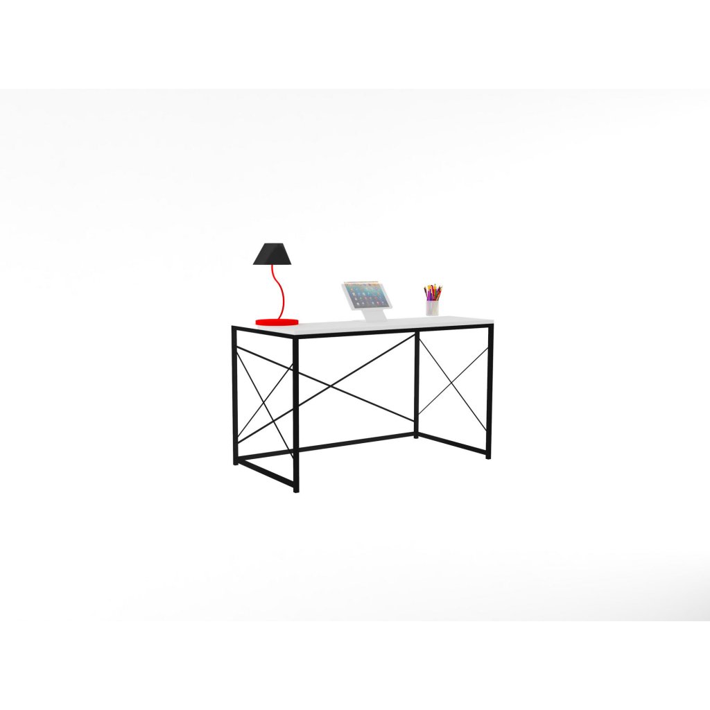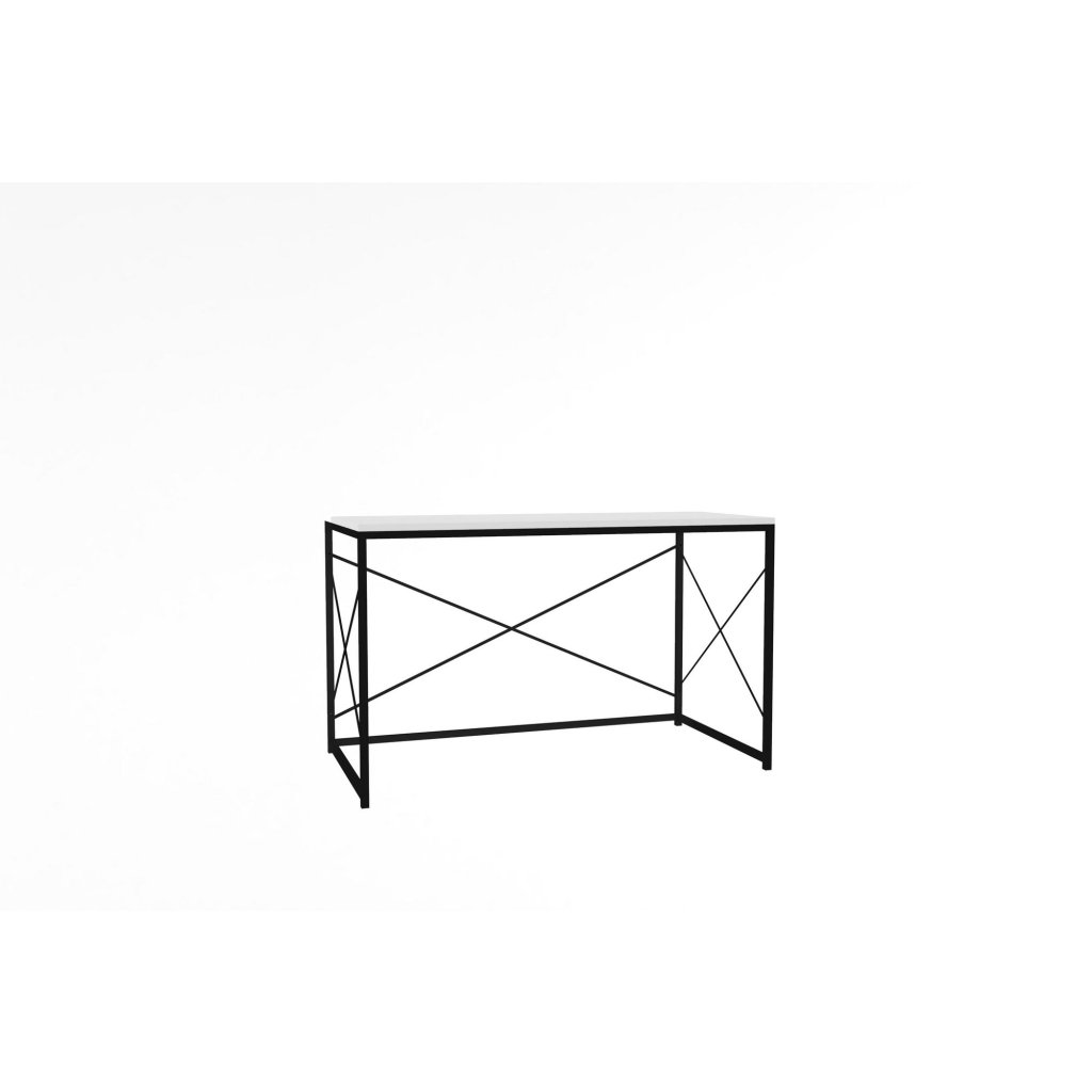 Designový psací stůl WORK od výrobce kvalitního nábytku KALUNE DESIGN. Tento krásný a luxusní stůl je vyroben ze 2 hlavních částí a to spodní konstrukce, která se skládá z tenkých kovových tyčí s černou práškovou barvou. Jednotlivé nohy jsou spolu navzájem spojeny, což dodává stolu maximální stabilitu a pevnost. Na vrchní část kovové konstrukce je přichycena dvojitá bílá deska vyrobená z dřevotřísky upravená melaminovou fólií.