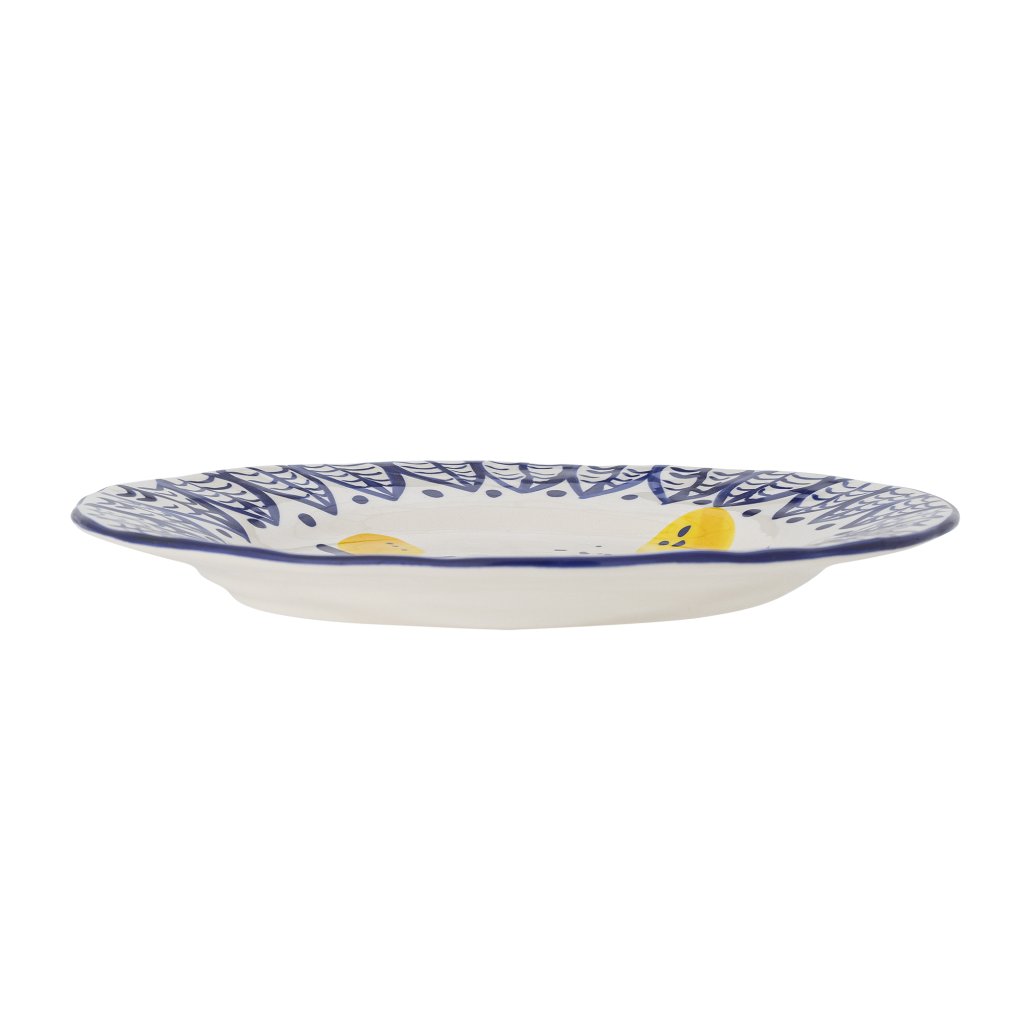 Stylový a krásný talíř MAXIMA od dánské značky nádherného nábytku BLOOMINGVILLE. MAXIMA je vyroben z kameniny a ručně zdoben krásným a barevným vzorem. Dekor talíře je inspirován teplými žlutými a modrými barvami středomoří a přináší na váš jídelní stůl svěží a příjemnou atmosféru. Talíř je ideální pro vytvoření útulného pocitu, ať už pro každodenní použití nebo pro zvláštní příležitosti.