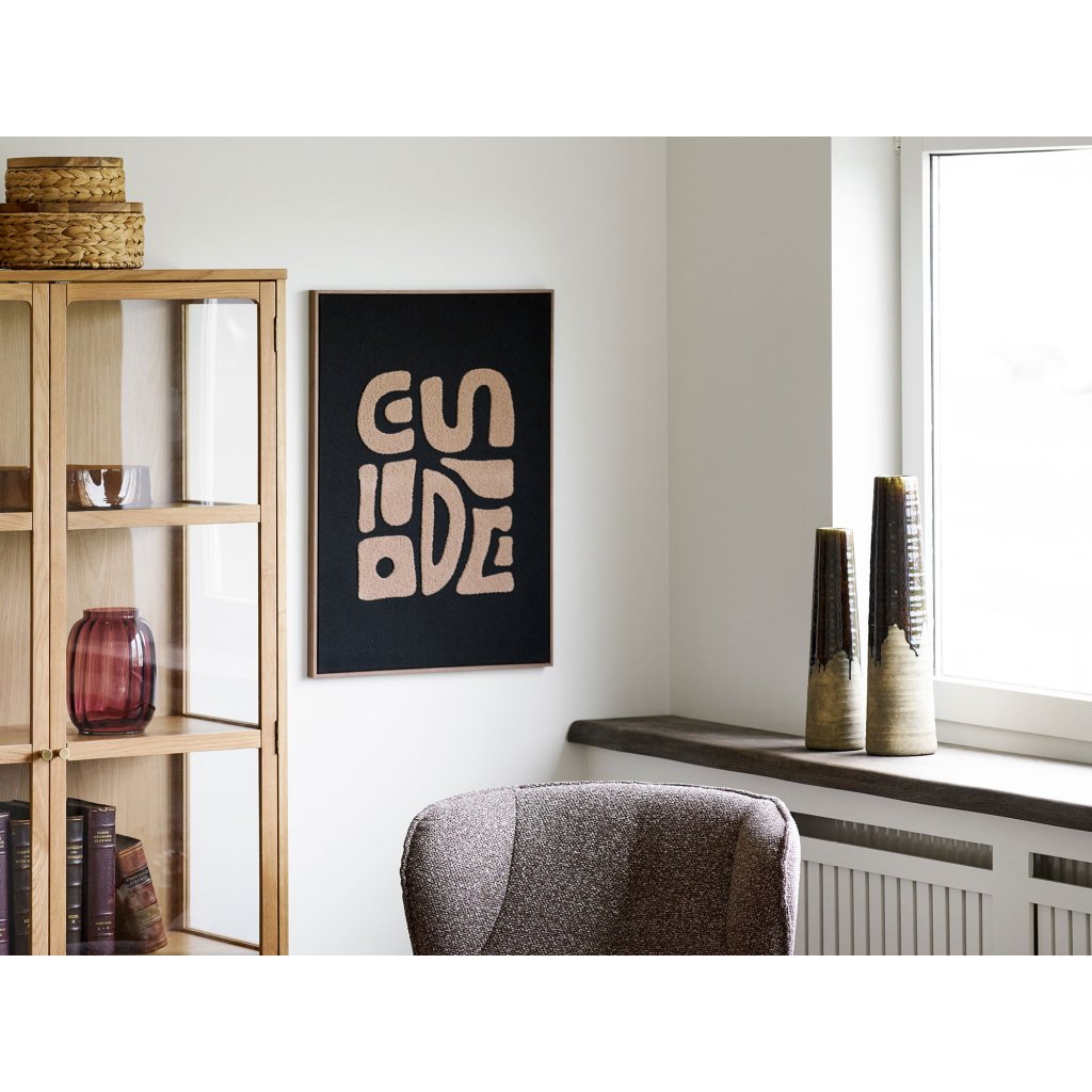 Zajímavý obraz TINE od dánského dodavatele nádherného nábytku HOUSE NORDIC. Obraz TINE má rozměry 50x70 cm, hnědý dřevěný rám, a jde o béžový textil na černém papíru. Jedná se o jednotlivé předměty, které připomínají písmo a společně vytváří zajímavý obraz. Parádní v kombinaci s obrazem TINE ve světlém provedení.