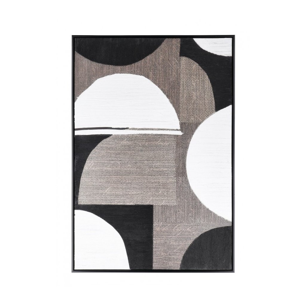 Tisk na plátně FABRIC od italského výrobce stylového nábytku a doplňků BIZZOTTO. Obraz FABRIC má rozměry 82,6x122,6 cm a jedná se o tisk na plátno s ruční úpravou a látkovou aplikací. Obraz má rám z MDF desky. Jedná se o velmi moderní abstraktní dílo s krásně propletenými tvary, které kombinují několik barev. Jedná se o bílou, hnědou a černou.
