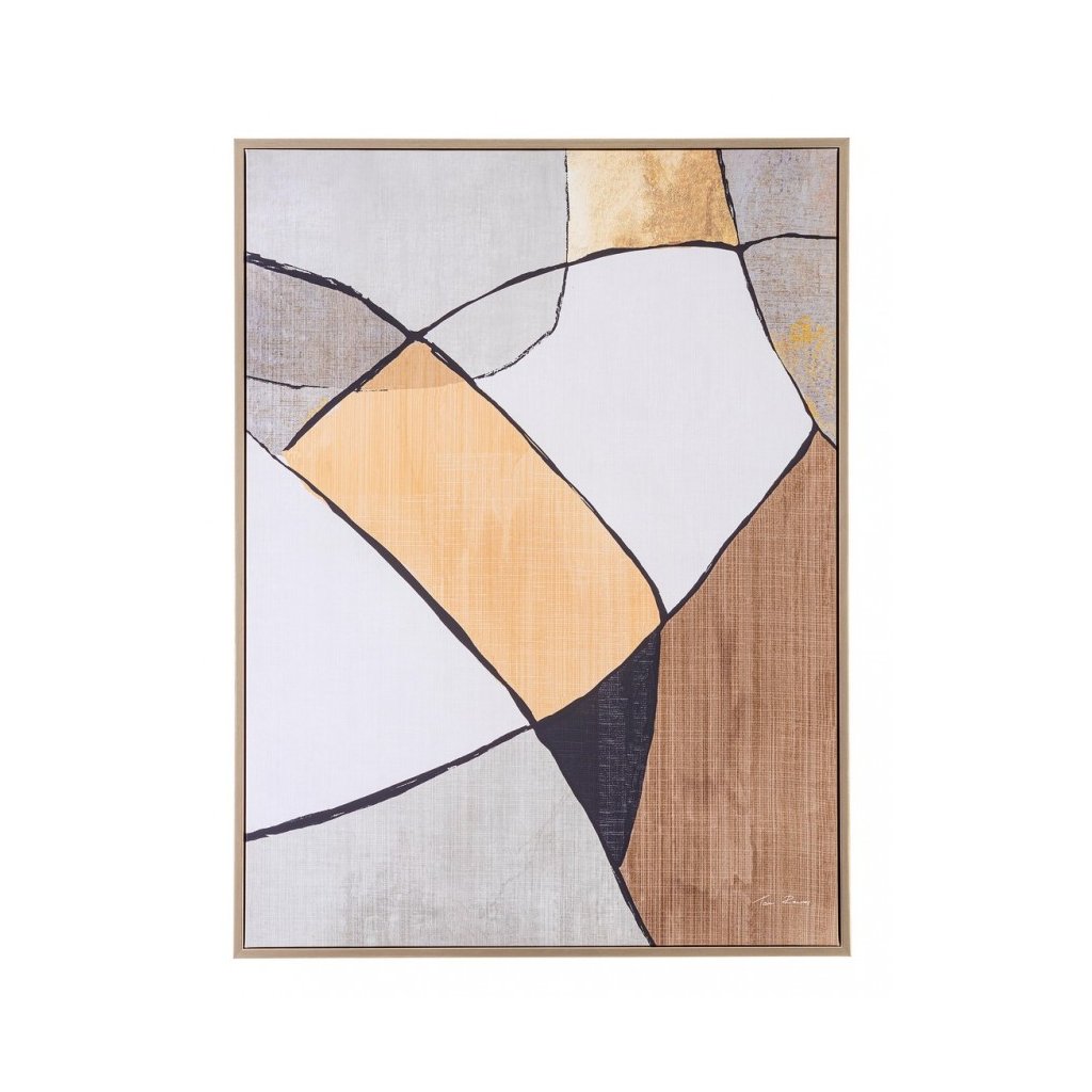 Tisk na plátně PAINT od italského výrobce stylového nábytku a doplňků BIZZOTTO. Obraz PAINT má rozměry 80x60cm a jedná se o tisk na plátno, jež je nataženo na konstrukci z borovicového dřeva a zarámován nazlátlým plastovým rámem. Jedná se o velmi moderní abstraktní dílo s krásně propletenými tvary, které kombinující barvy, bílé hnědé, šedé a oranžové.