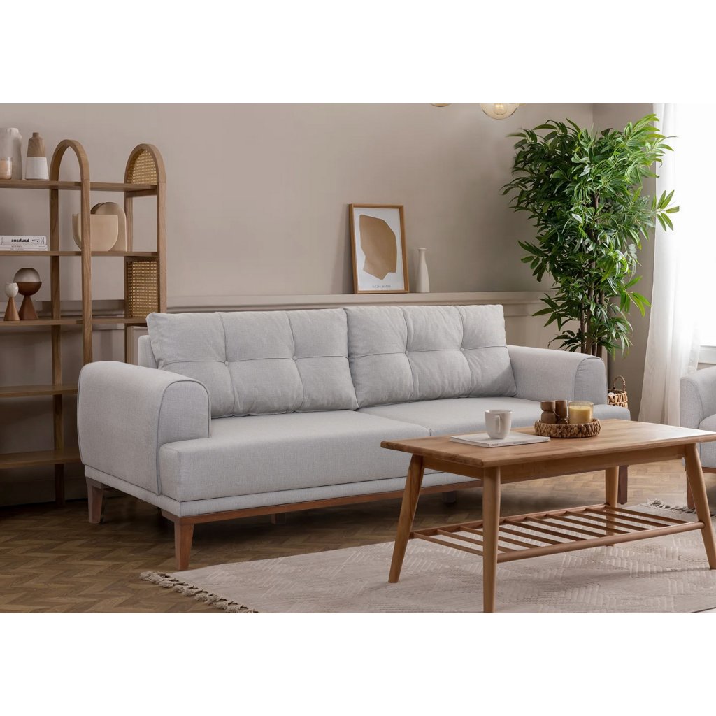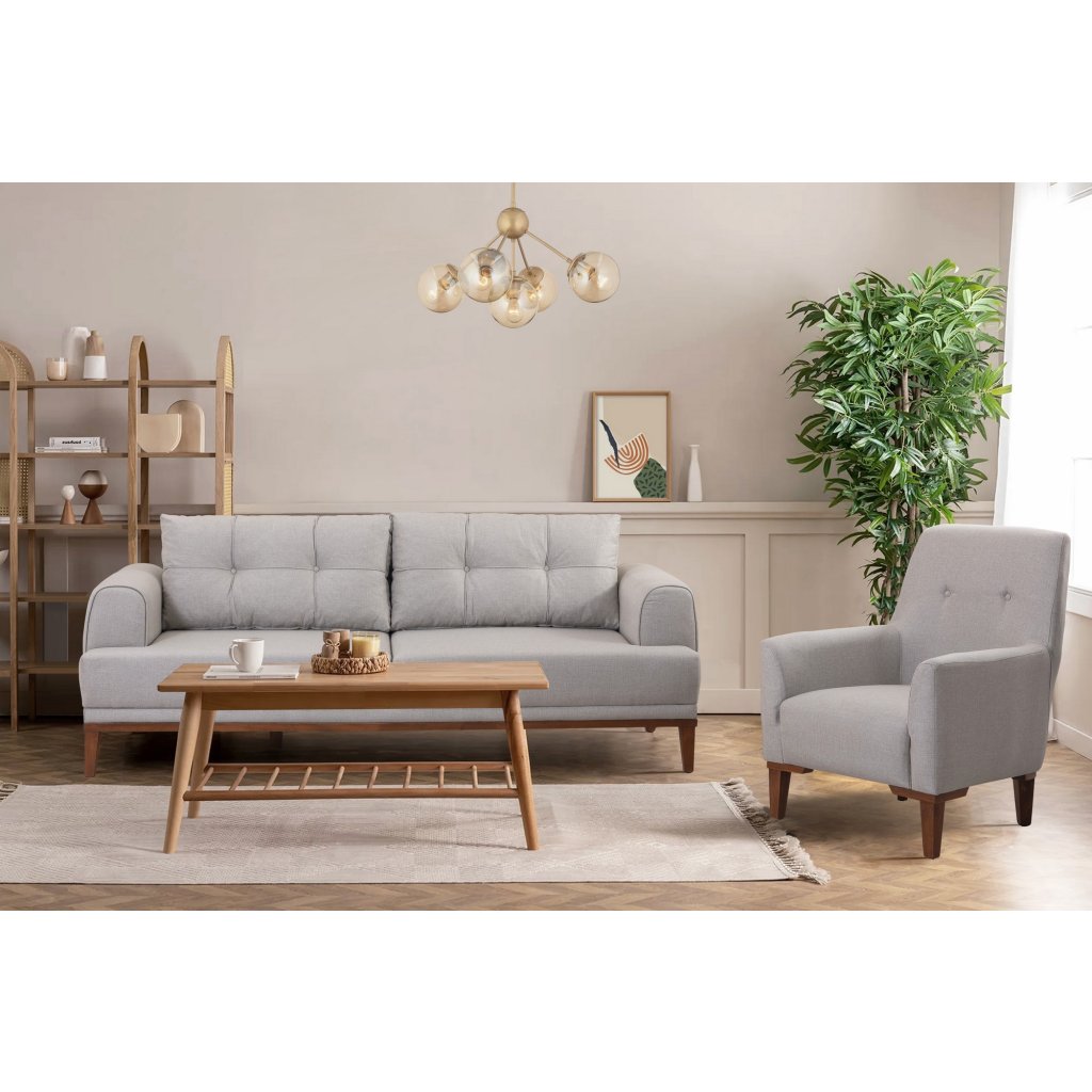 Designová třímístná pohovka s křeslem BALERA od výrobce nábytku a pohovek Hanah Home. Pohovka a křeslo BALERA vás zaručeně zaujmou na první pohled. Velice stylová pohovka vás osloví nejen kvalitním zpracováním, ale také svým minimalistickým designem. Rám pohovky i křesla je kompletně vyroben z habrového dřeva. Krásná krémová látka je ze 100% lnu. Sedák je vyplněn pěnou. Pohovka bude skvělým místem pro odpočinek a relaxaci. Díky velmi praktickému křeslu získáte opravdu dokonalý interiér.