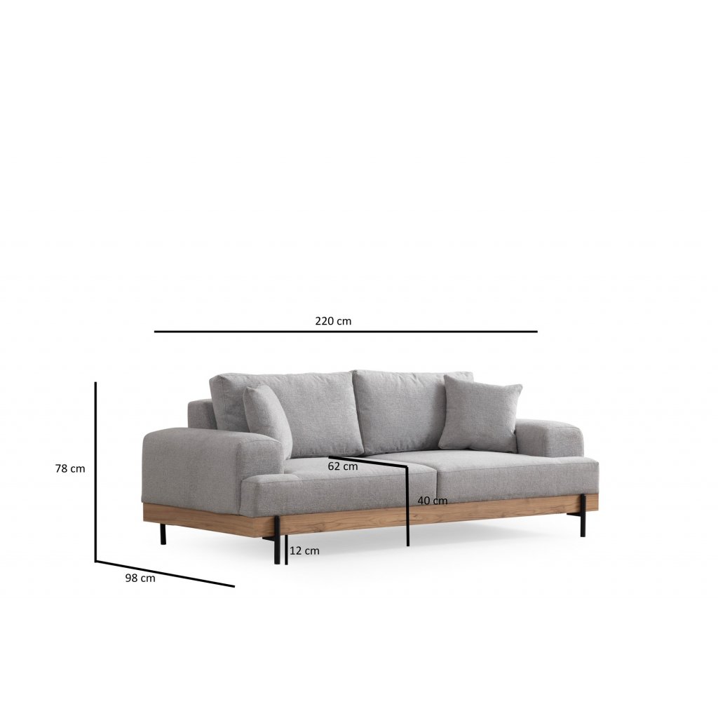 Designová třímístná pohovka ETI od výrobce nábytku a pohovek Hanah Home. Pohovka ETI vás zaručeně zaujme na první pohled. Velice stylová pohovka vás osloví nejen kvalitním zpracováním, ale také svým minimalistickým designem. Rám je vyroben z kombinace bukového dřeva a dřevotřísky a je v barevném provedení dubu. Krásná šedá látka je ze 100% polyesteru. Sedák je vyplněn pěnou. Pohovka bude skvělým místem pro odpočinek a relaxaci.