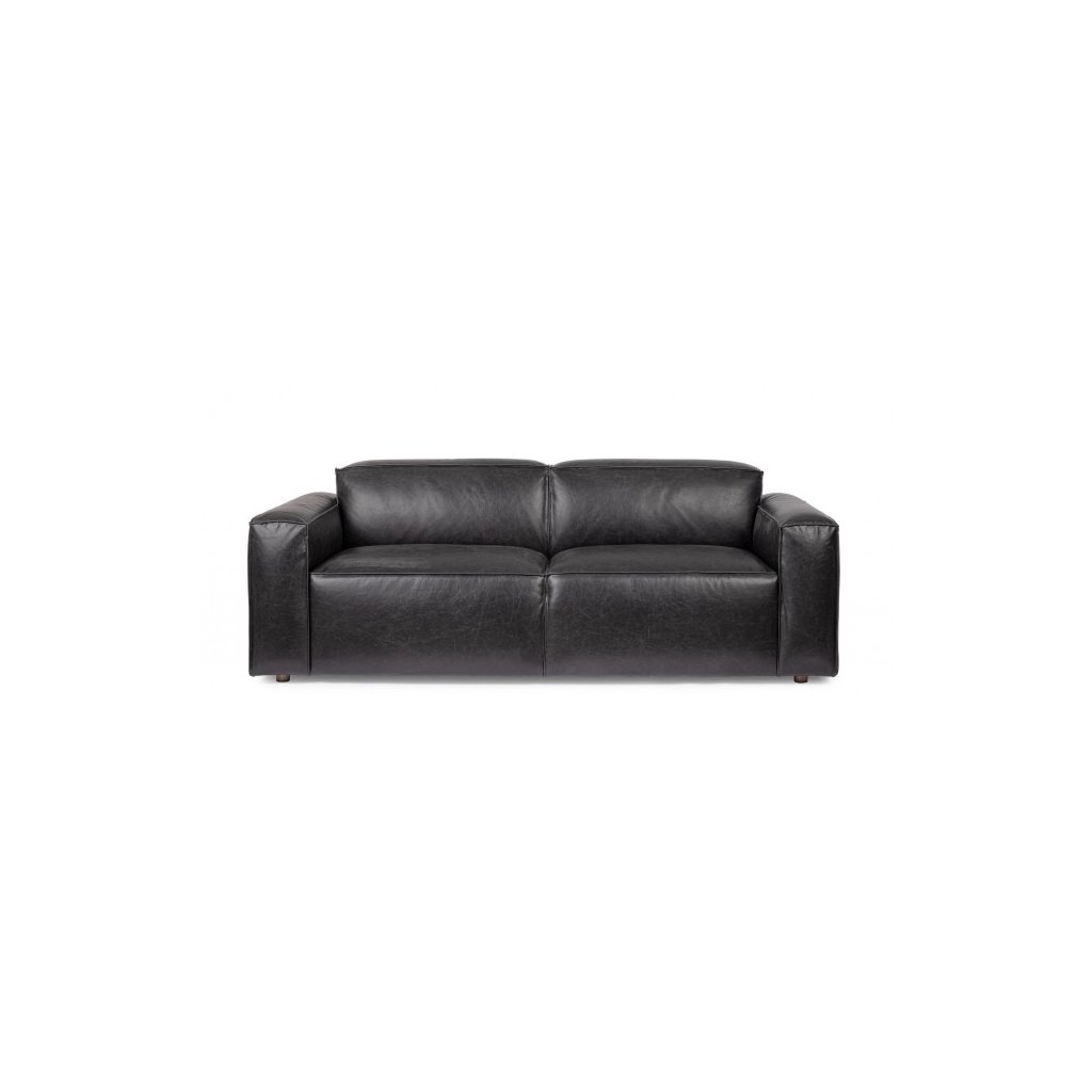 Třímístná pohovka JOSEPH od italské firmy stylového nábytku BIZZOTTO s povlakem z imitace kůže v černém provedení.