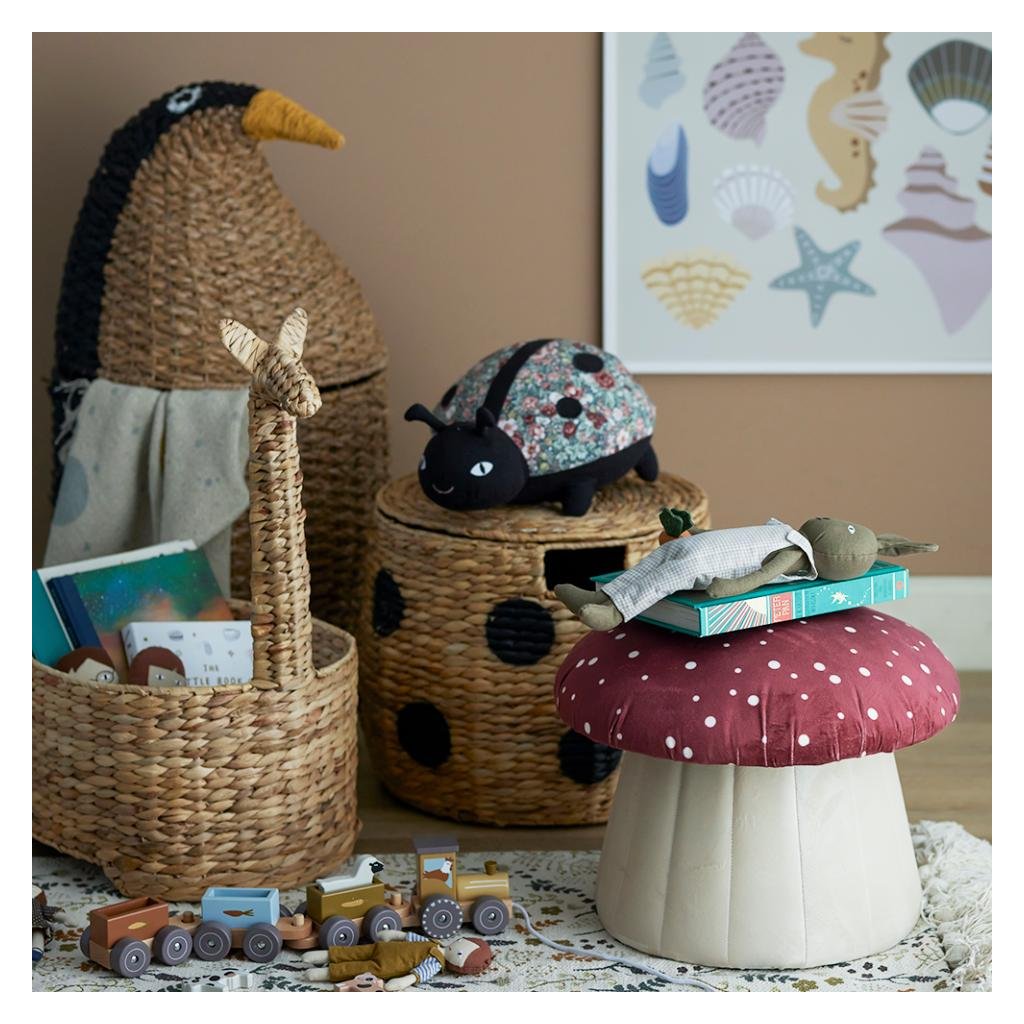 Úložný koš TAZIA od dánského výrobce nádherného nábytku BLOOMINGVILLE. Koš TAZIA je kompletně vyroben ze sušených listů exotické traviny, což ocení hlavní milovníci přírodních materiálů. Celý je ve znamení postavy tučňáka, včetně černého barvení těla a vymodelované hlavy se zobákem na vrchním krytu. Ideální na hračky do dětského pokojíčku. Díky rozměrům 37 a 69 cm se do něj vejde poměrně dost věcí.