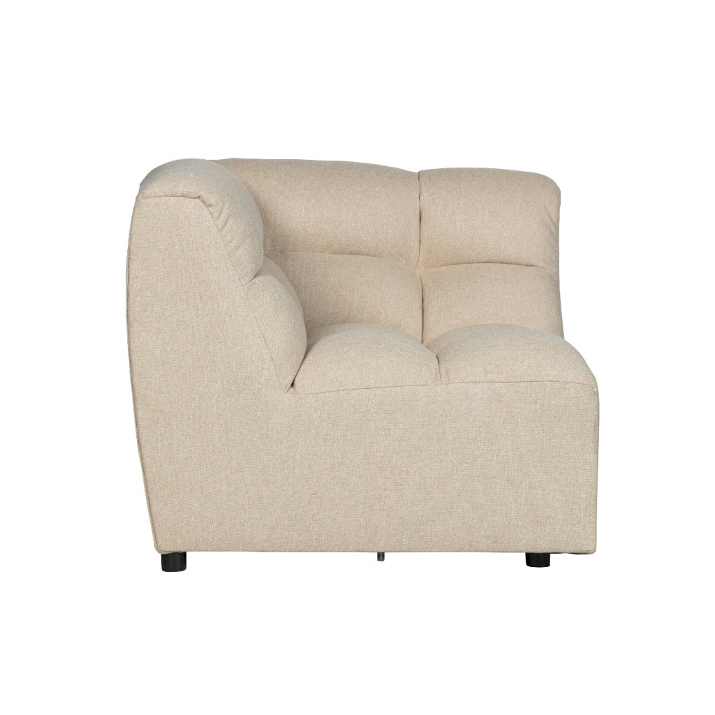 Designový rohový kus pohovky PEPPER od holandského výrobce kvalitního nábytku WOOOD. Stále více oblíbenější kusy nábytku jsou tyto variabilní sedací soupravy. Tuto pohovku si můžete sestavit úplně sami dle toho jak vy potřebujete. Tento rohový kus můžete spojit ještě s křeslem a 2místnou pohovkou - dostanete tak velikou rohovou pohovku. Textil má krásný pískový finiš a charakteristické prošívané zdobení čalounění. Robustní kus pohovky je velmi pohodlný k sezení. Sedačka má 4 nízké plastové nohy. Odpočinek na této sedačce je přímo báječný!