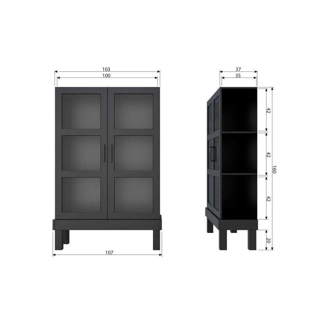 Designová vitrína s průhlednými dvířky BONK od holandského výrobce WOOOD. Kabinet je vyrobený z borovicového dřeva s certifikací FSC, které je povrchově upraveno černou barvou. Vitrína vám poskytne mnoho úložného prostoru díky třem policím. Vitrínu využijete například v obývacím pokoji, kde krásně zapadne.