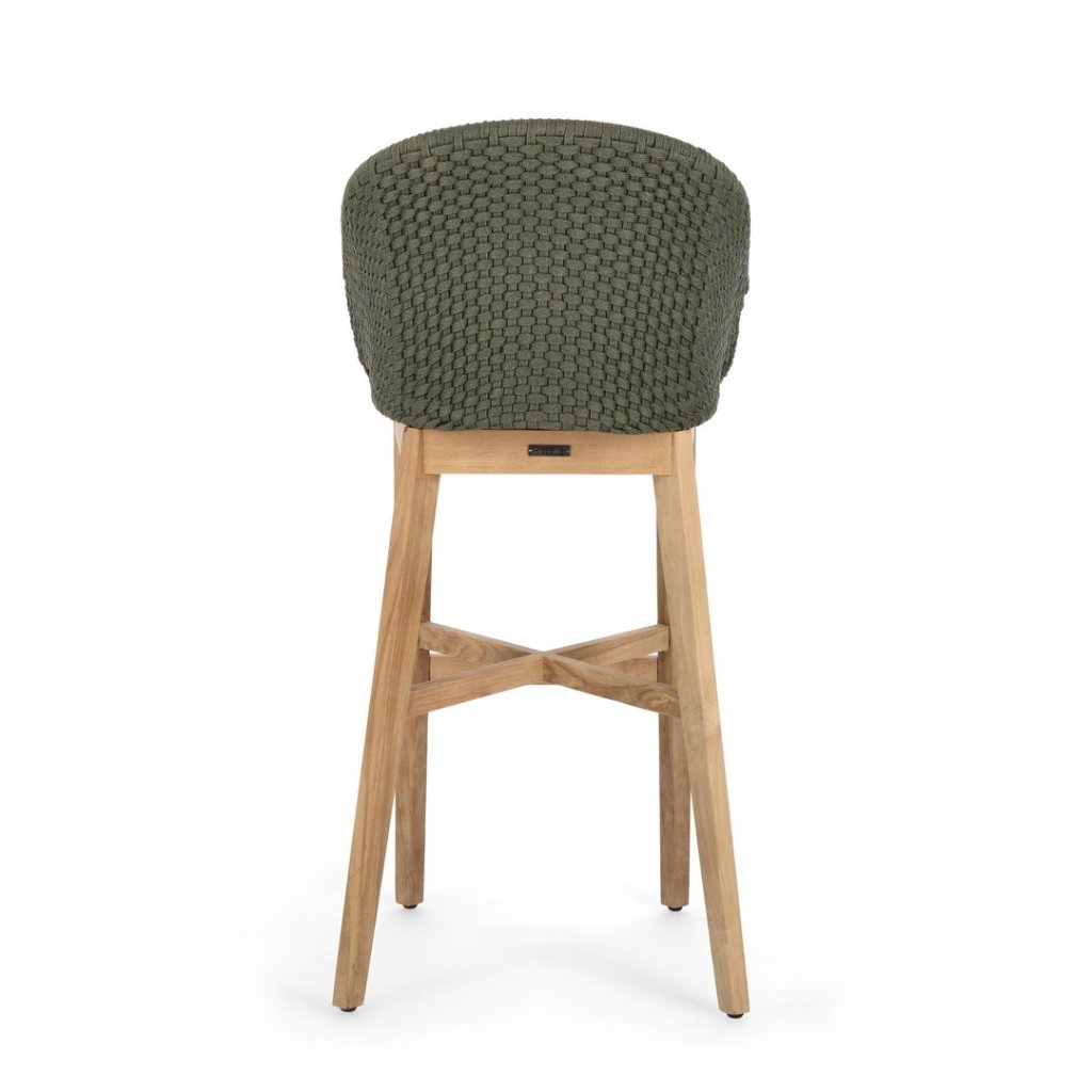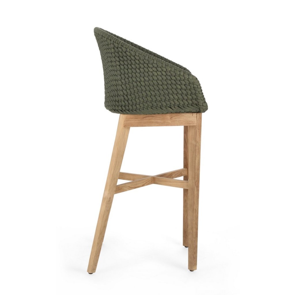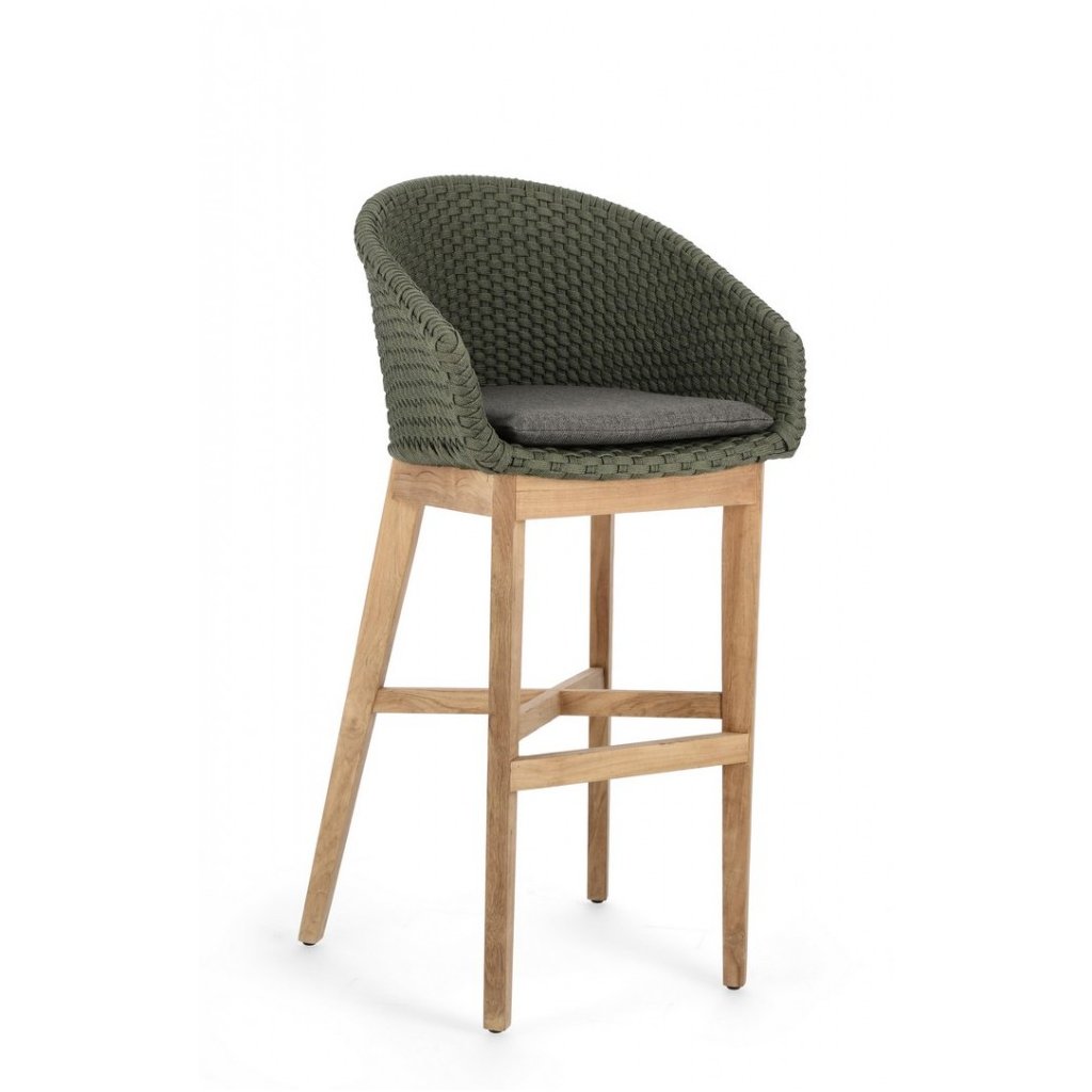 Designová barová židle s opěrkami COACHELLA od italské firmy stylového nábytku BIZZOTTO. Židli COACHELLA tvoří pevný rám z hliníku, který je potažen olefinovou látkou v zelené barvě. Sedák je odnímatelný a taktéž z odolné látky olefin. Čtyři dřevěné nohy z teaku se vzpruhou zaručují maximální stabilitu a nosnost. COACHELLA vystupuje jako luxusní, pohodlné křesílko.
