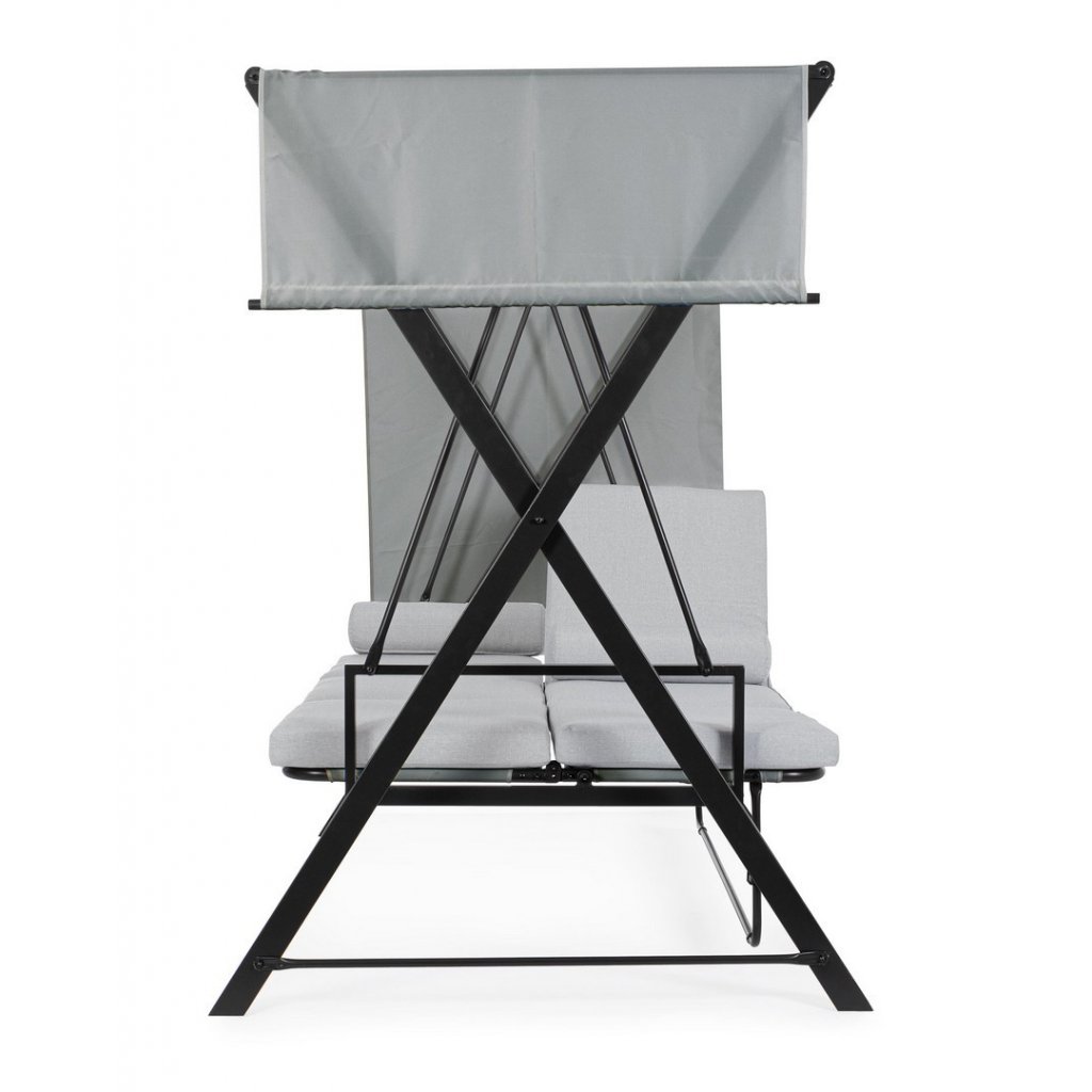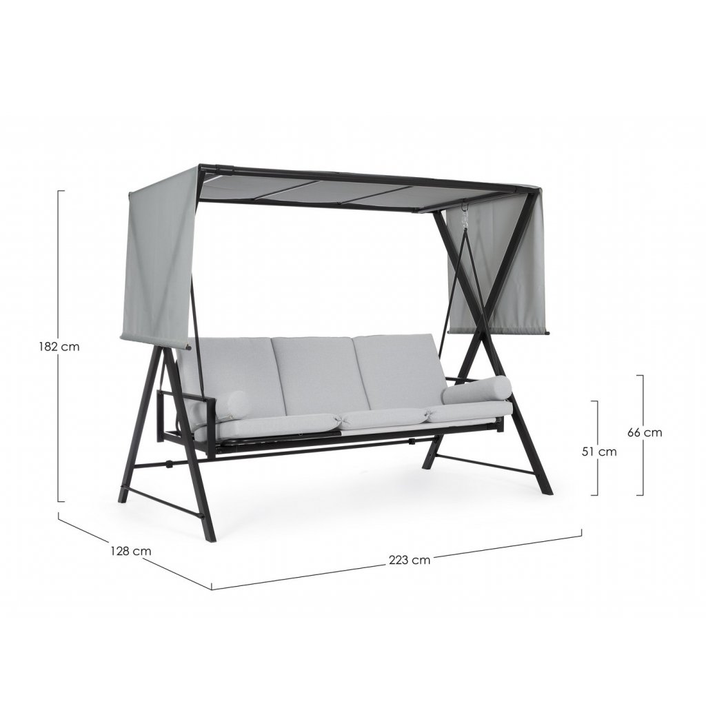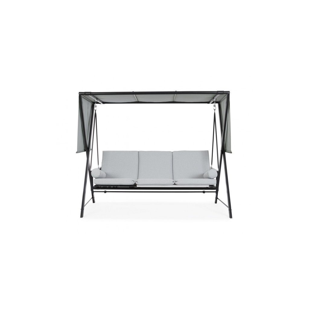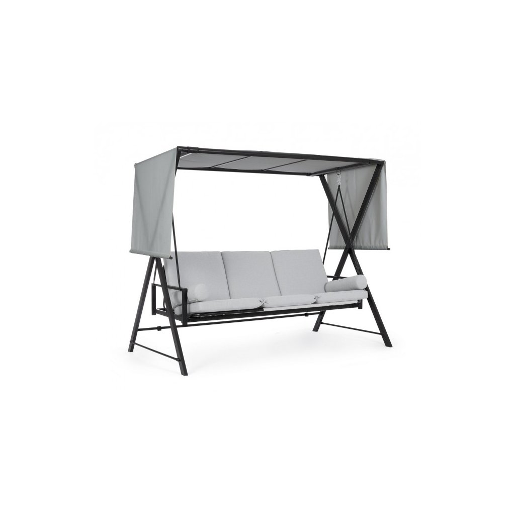 Moderní zahradní houpačka POMPEI od italského výrobce stylového nábytku BIZZOTTO. Zahradní houpačku tvoří třímístná sedačka, ocelová konstrukce a šedé polyesterové polštářky. Díky její polohovatelnosti můžete sklopit zadní část a houpačku použít také jako lehátko. Příjemné vám budou i boční područky na obou stranách. Šrouby jsou galvanizované, takže se nemusíte bát jejich zreznutí.