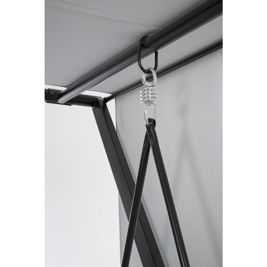 Stylová zahradní houpačka POMPEI od italského výrobce stylového nábytku BIZZOTTO v provedení šedé barvy a tmavě lakované konstrukce.