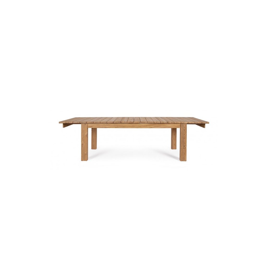 Nádherný rozkládací zahradní stůl ZORRITOS od italského výrobce stylového nábytku BIZZOTTO. Krásný a jednoduchý stůl je kompletně vyrobený z recyklovaného teakového dřeva s certifikátem FSC. Dřevo má povrch upravený matným lakem na vodní bázi. Stůl je velmi praktický díky možnosti rozložení. Časem mohou na dřevu vzniknout praskliny či nedokonalosti, které jsou pro toto dřevo charakteristické.