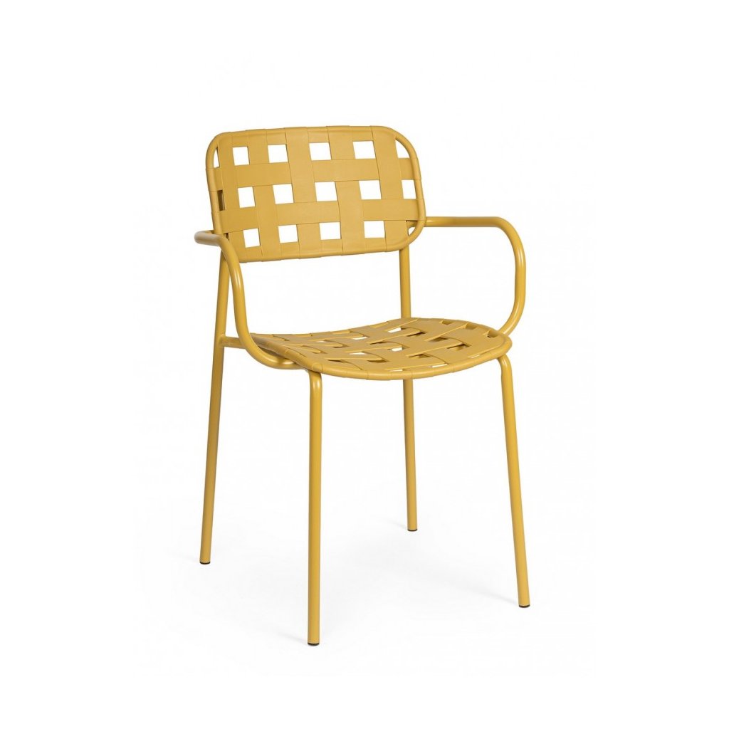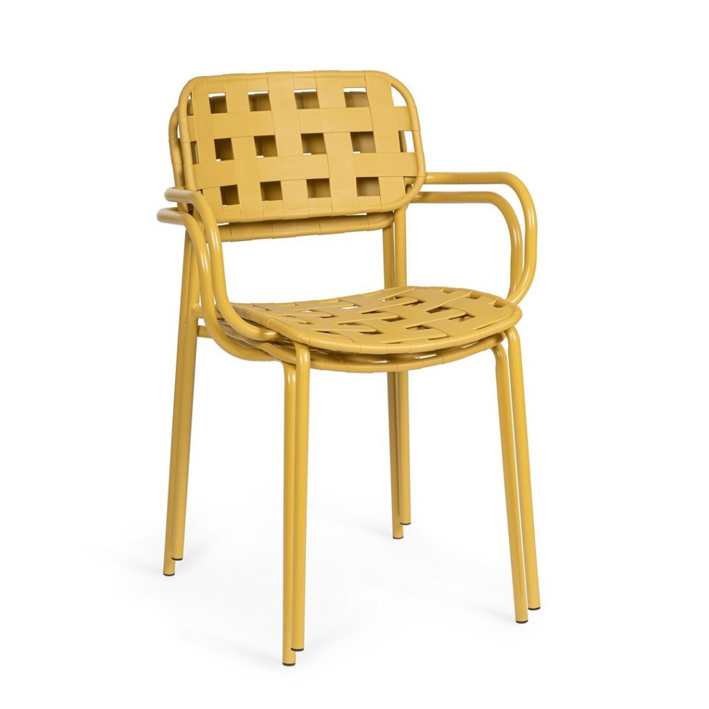 Zahradní stohovatelná kovová židle CLOVER od italského výrobce stylového nábytku BIZZOTTO v krásném žlutém provedení.