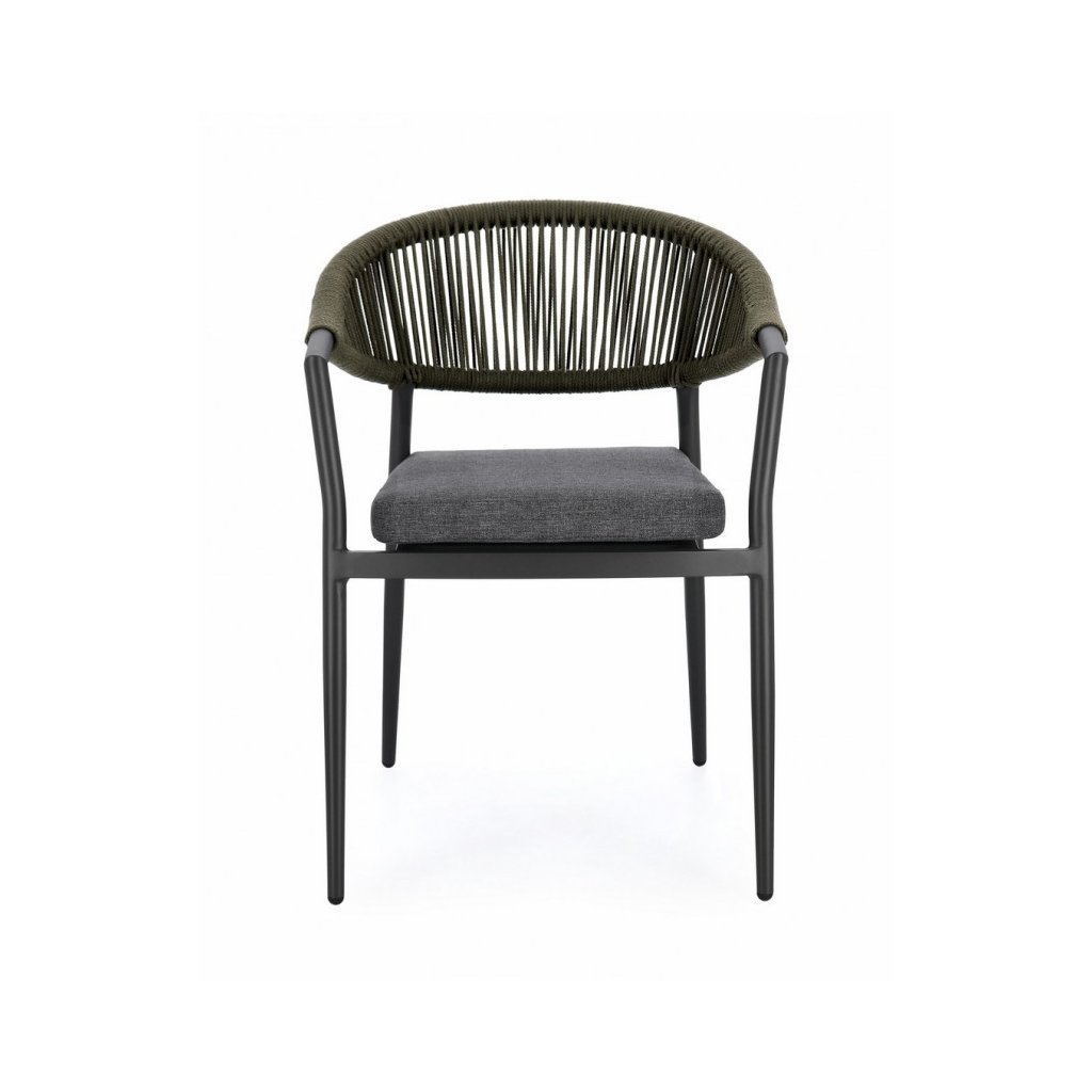 Designová zahradní židle MILLOR od italského výrobce stylového nábytku BIZZOTTO v kvalitním pevném hliníkovém provedení s tkanou opěrkou a vyjímatelným sedákem.